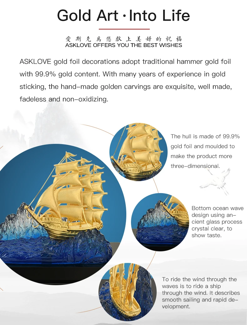 Бренд: Asklove Название: парусник из золотой фольги Размер: 24.5х15.5х19 см ID:JF-GM-483 Тема: парусная лодка Материал: Золотая фольга 24K Упаковка: подарочная упаковка Применение: деловые подарки, офисные украшения, украшение для дома Корпус изготовлен из 99.9% золотой фольги и формован, чтобы сделать продукт более трехмерным. Дизайн нижней волны океана с использованием Древнего стекла процесс кристально чистый, чтобы показать вкус. Ездить по ветру по волнам-это ездить на корабле по ветру. Он описывает плавное плавание и быстрое развитие. Поскольку мы являемся профессиональным производителем золотого искусства, мы просто производим продукцию высокого качества, пожалуйста, выделите другие низкоценовые товары! Все продукты поддерживают прямую доставку. Мы поддерживаем изготовление на заказ. Если вам нужна оптовая продажа, пожалуйста, свяжитесь с нами. Спасибо вам