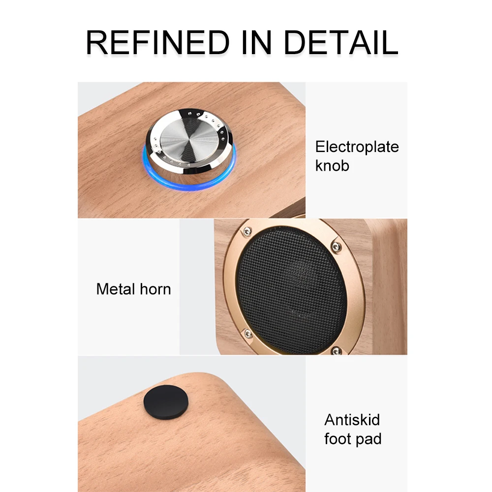 Один 3 дюймов Полнодиапазонный динамик: энергичный бас, удивительная и отличительные тон. Стабильное и надежное соединение Bluetooth с вашими устройствами, такими как телефон, iPad, компьютер, Windows/Android/Apple. Простой и короткий стиль: коробка с высокой плотностью может эффективно устранить плохой резонанс, а цвет лучше интегрирован с мебельной средой. Встроенный литиевый аккумулятор емкостью 1200 мАч. Сильный анти-помех и широкий эффективный диапазон (до 10 м). Металлический динамик, Противоскользящий коврик, гальваническая ручка.