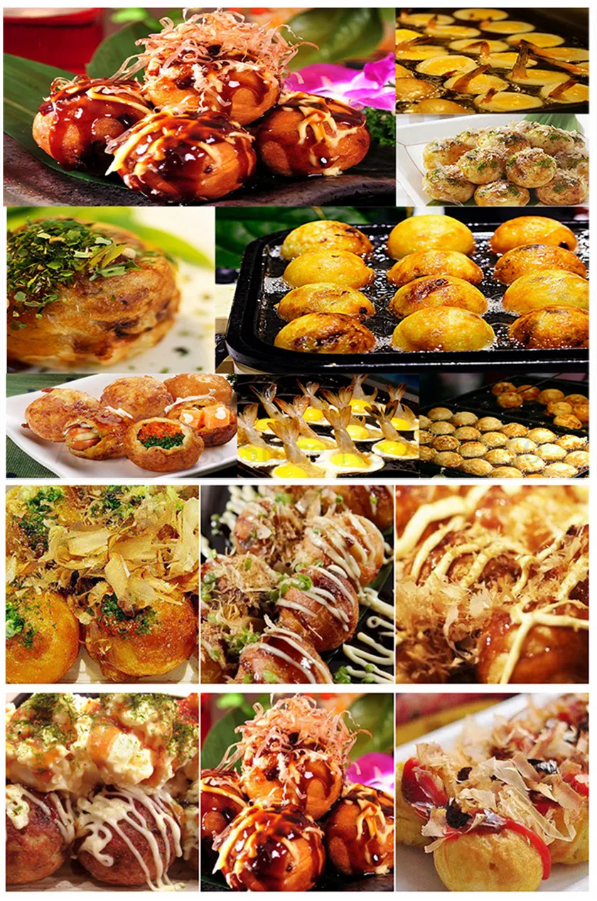 Takoyaki (たこ焼き or 蛸焼) is a ball-shaped Japanese snack made of a wheat flour-based batter and cooked in a special molded pan. It is typically filled with minced or diced octopus (tako), tempura scraps (tenkasu), pickled ginger, and green onion. Takoyaki are brushed with takoyaki sauce (similar to Worcestershire sauce) and mayonnaise, and then sprinkled with green laver (aonori) and shavings of dried bonito. There are many variations to the takoyaki recipe, for example, ponzu (soy sauce with dashi and citrus vinegar), goma-dare (sesame-and-vinegar sauce) or vinegared dashi. Yaki is derived from "yaku" (焼く) which is one of the cooking methods in Japanese cuisine, meaning "to fry or grill", and can be found in the names of other Japanese cuisine items such as okonomiyaki and ikayaki (another famous Osakan dishes).Смотрите так же другие товары: