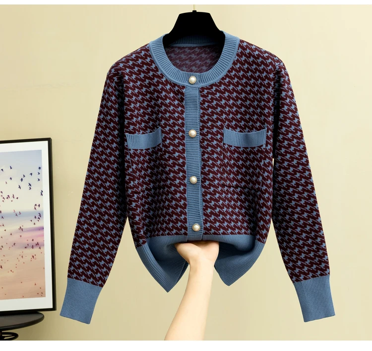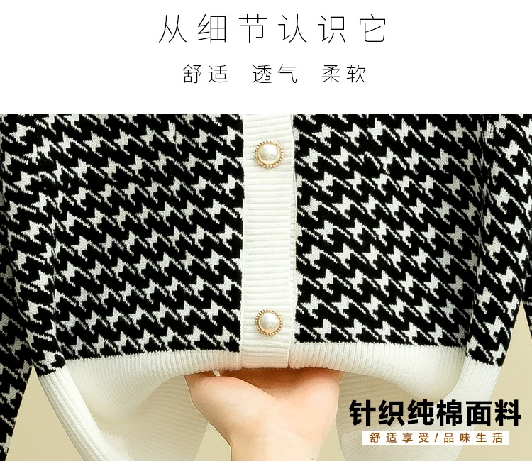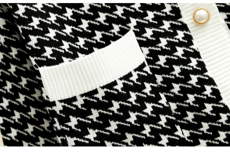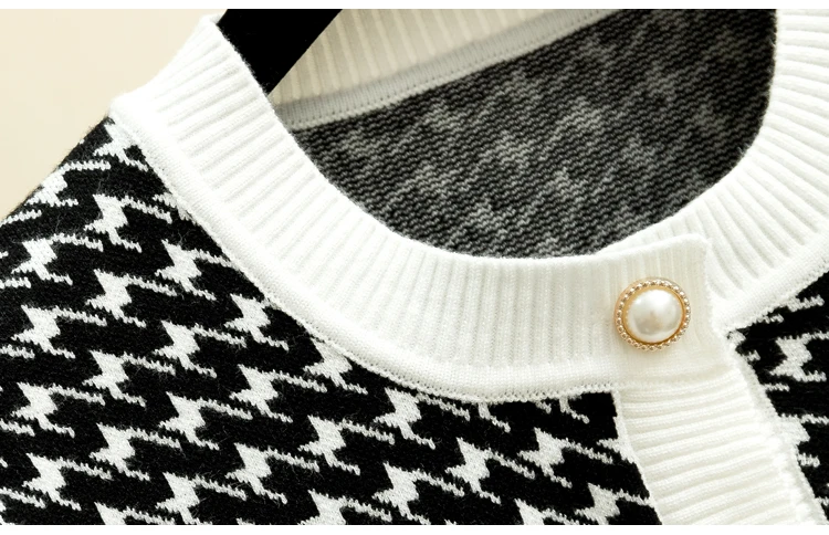 Элегантный однобортный клетчатый вязаный кардиган для женщин с круглым вырезом, черный свитер modis, осень 2020, Новое поступление, топы