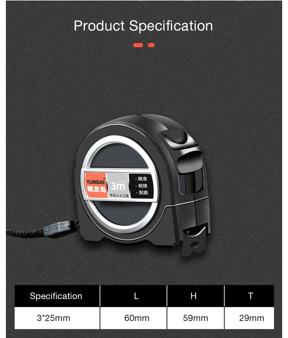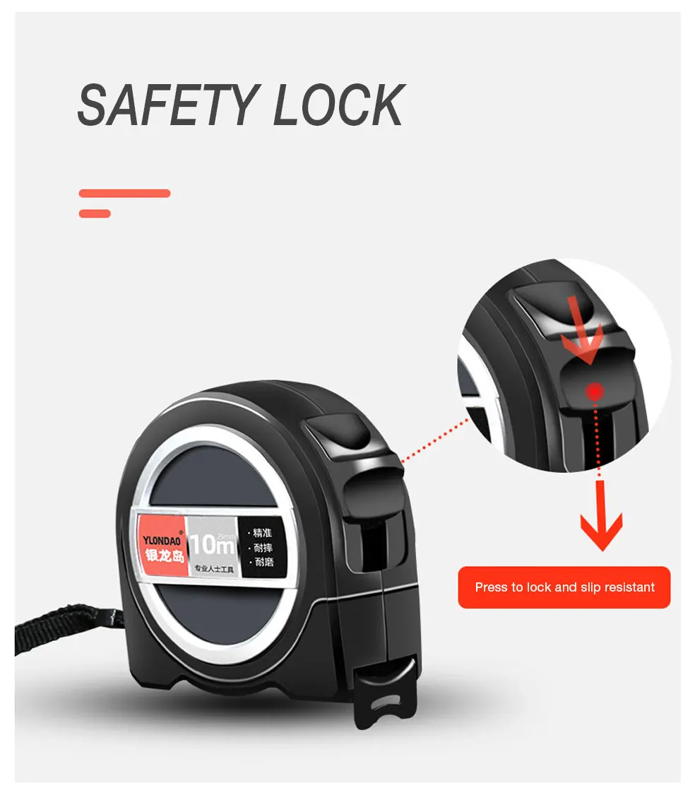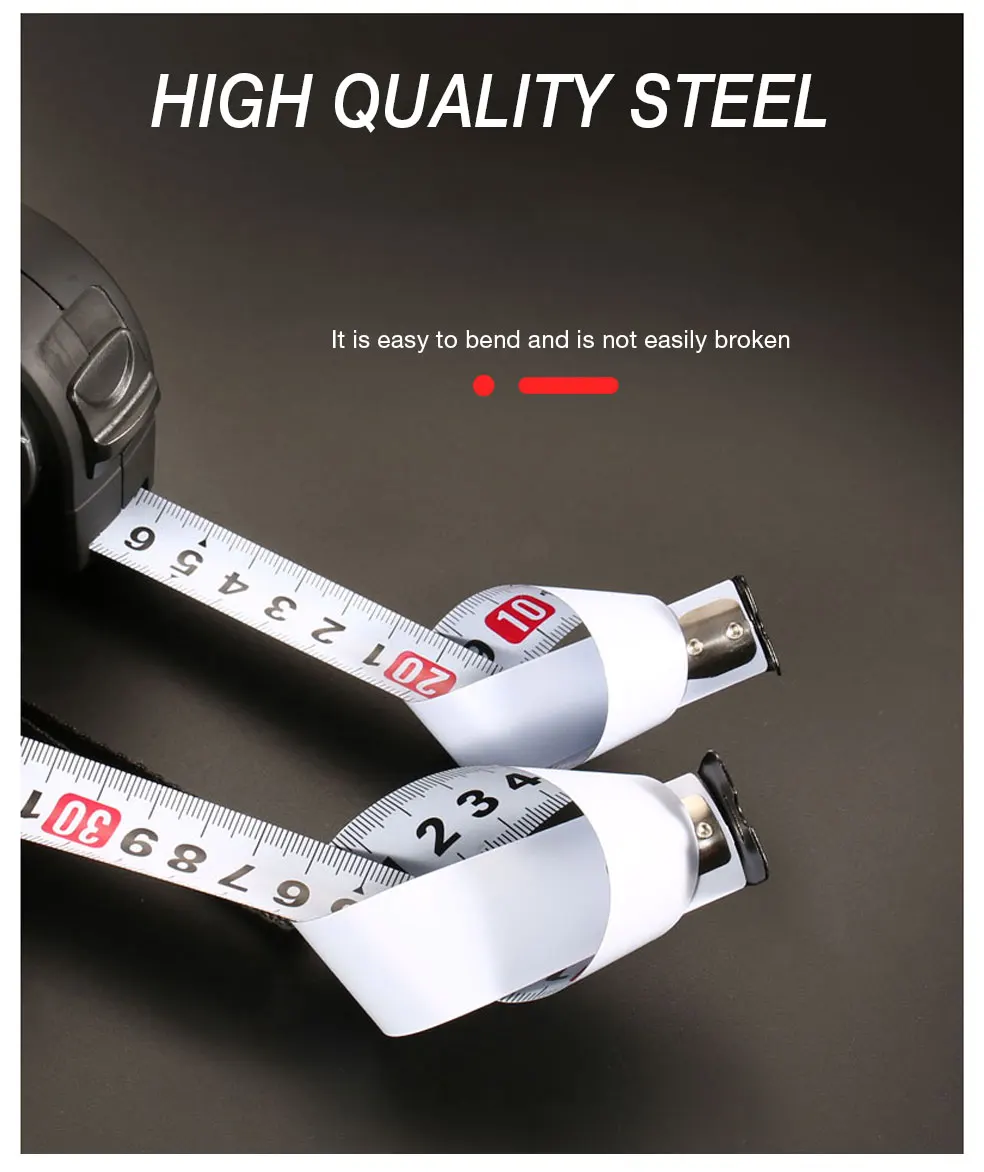 Характеристики: Предпочтительная сталь, сопротивление изгибу, сильная прочность, специальная обработка, износостойкая лента, с ясным масштабом, низкая погрешность, конструкция веревки, с оплеткой и застежкой, безопасный замок.