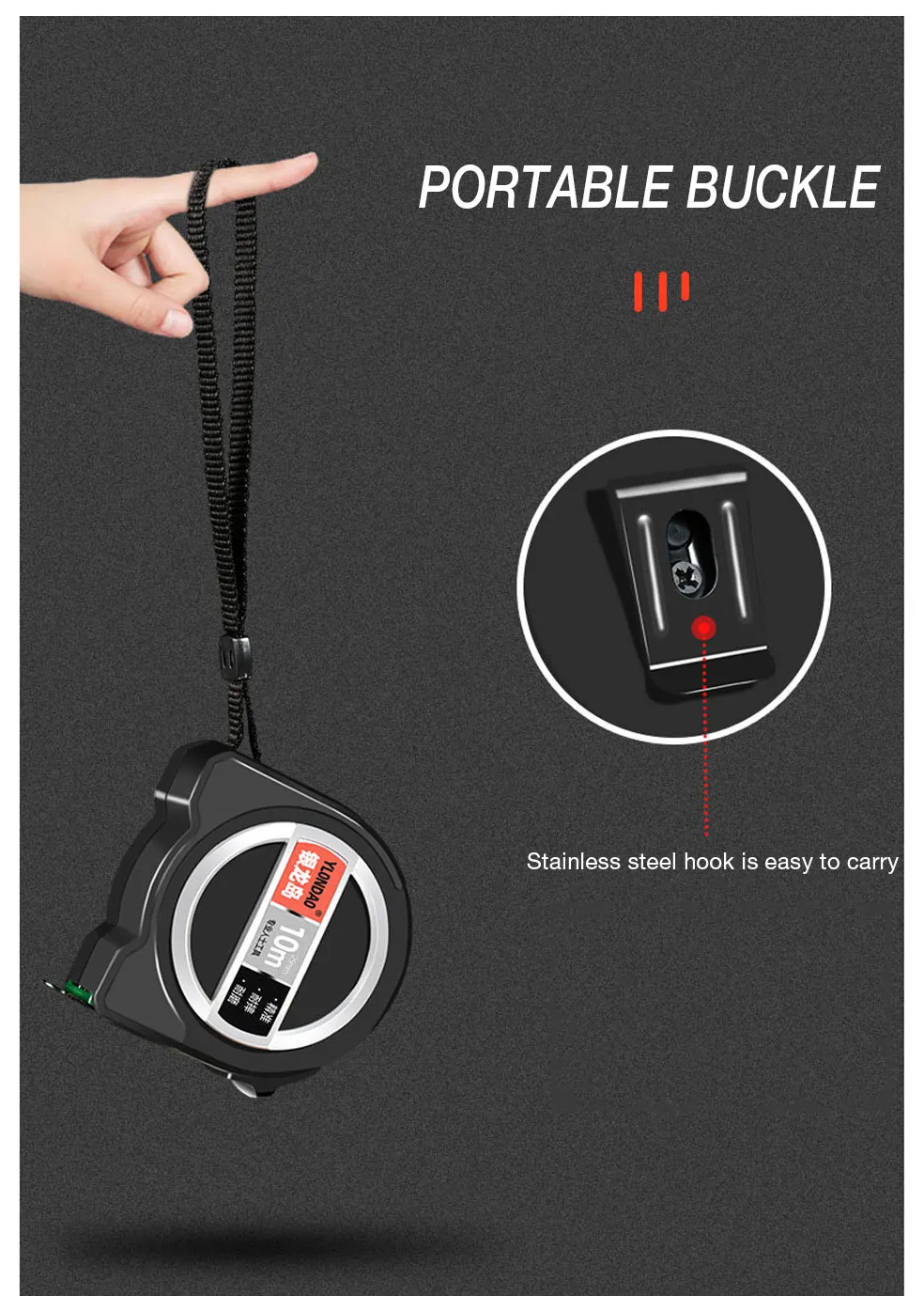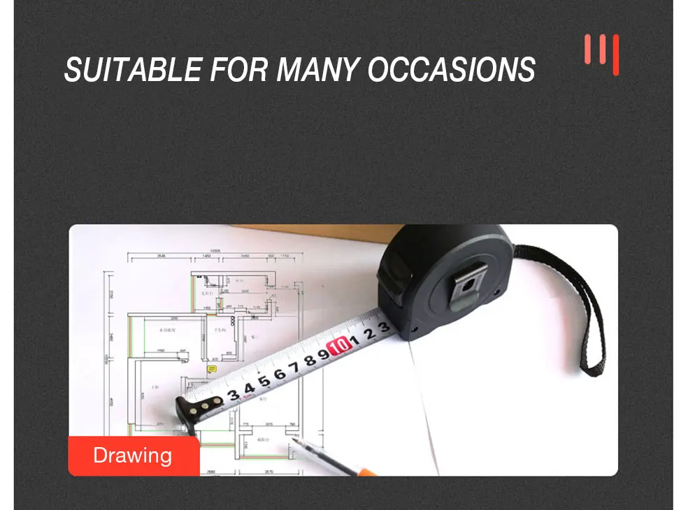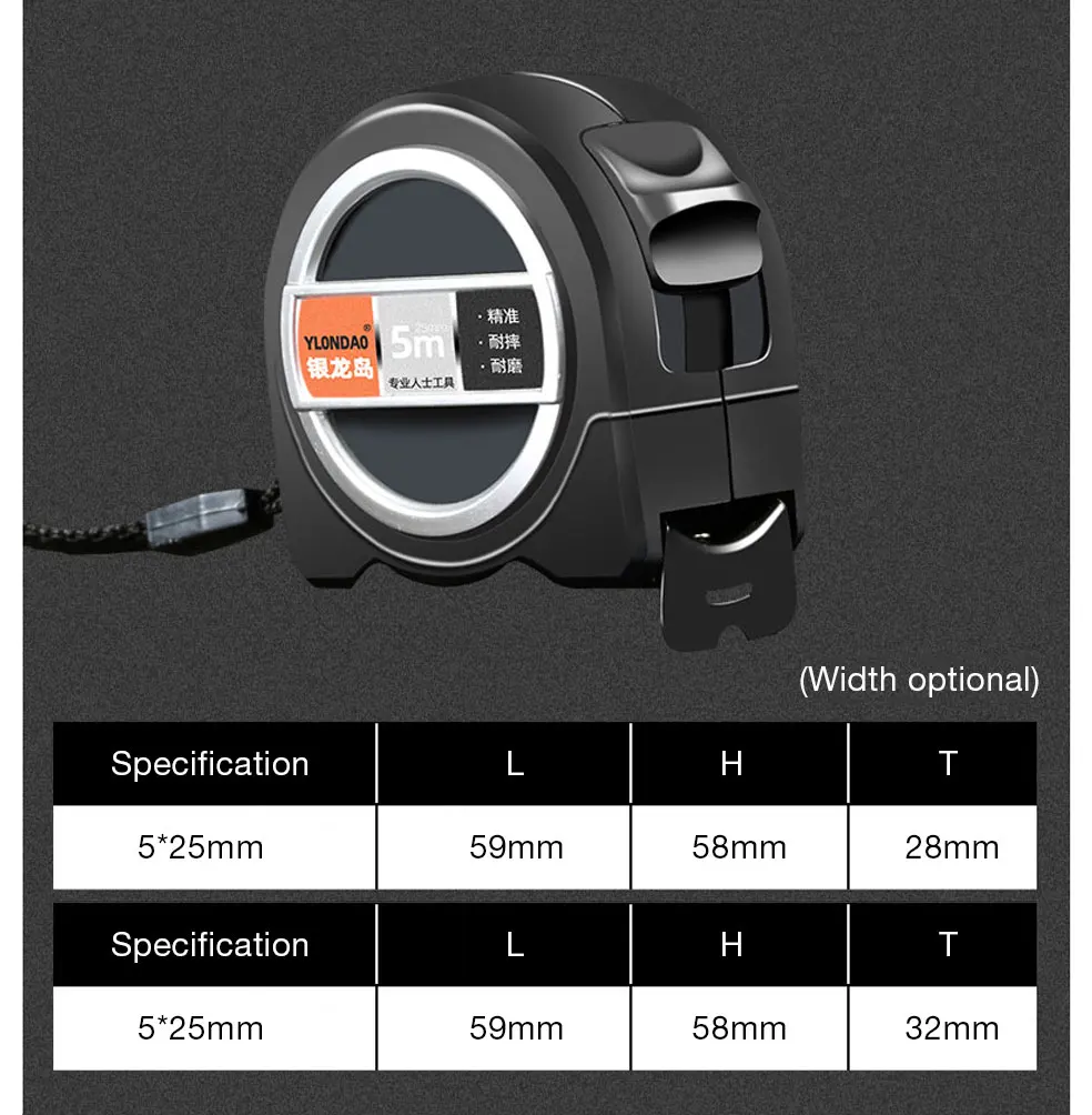 Характеристики: Предпочтительная сталь, сопротивление изгибу, сильная прочность, специальная обработка, износостойкая лента, с ясным масштабом, низкая погрешность, конструкция веревки, с оплеткой и застежкой, безопасный замок.