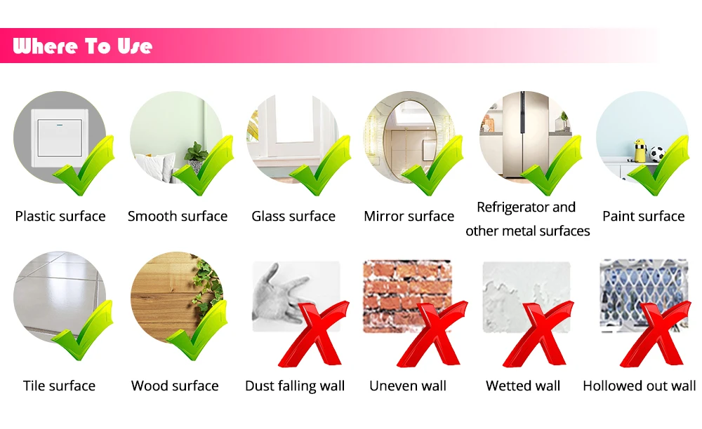 1. Убедитесь, что поверхность, которую нужно прикрепить, является гладкой поверхностью и что есть конвекции, сотканы и морщины. Не прилипают.
