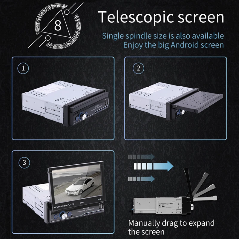 9702 Android 8,1 системы 7 дюймов телескопические автомобилей с MP5 плеер GPS навигации Bluetooth заднего хода