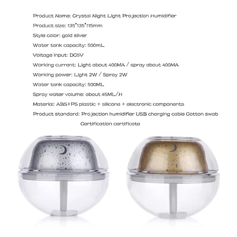 Особенности: Ультразвуковая операция-увлажняет ваше живое пространство, чтобы предотвратить сухость, душный воздух и грипп/холодные микробы, заражающие ваших близких. Предотвращает появление сухой и потрескавшейся кожи в сухом зимнем месяце. Отличный ночной Светильник для маленьких детей, боящихся темноты перед сном. Желудка в форме лепестков, так что фокусируется на высвобождении водяного тумана, быстром разложении, точном восполнении, не боясь тугой кожи Керамическая пленка для распыления 2 миллиона раз в секунду Высокочастотный Ультразвуковой шок Ультратонкие молекулы воды, эквивалентные диаметру волос 1/60 Легкость снятия стресса, высокое качество медицинской помощи Спа можно также сделать дома Естественное пополнение, здоровее, чем химическая косметика Тихий дизайн, бесшумное движение, безвентиляторный звук, капающий звук, статический, например, дыхание ребенка, наслаждайтесь комфортным сном Нулевое излучение, которое может уменьшить распространение бактерий и поддерживать здоровую влажность, для беременных женщин, пожилых людей, детей Автоматическая отсечка мощности, когда вода сухая, чтобы предотвратить повреждение машины Характеристики: Цвет корпуса: золотой, серебряный Материал: ABS + PS пластик + силикагель + электронные компоненты Рабочий ток: освещение около 400мА/, распыление около 400мА Рабочая мощность: светильник 2 Вт/спрей 2 Вт Распылительная вода: около 45 мл/ч Рабочее напряжение: 5 В Емкость резервуара для воды: 500 мл Размер: 93x96x98мм Площадь увлажнения: 10 квадратных метров Посылка включает в себя: 1 х увлажнитель 1 х USB кабель 1 х Руководство