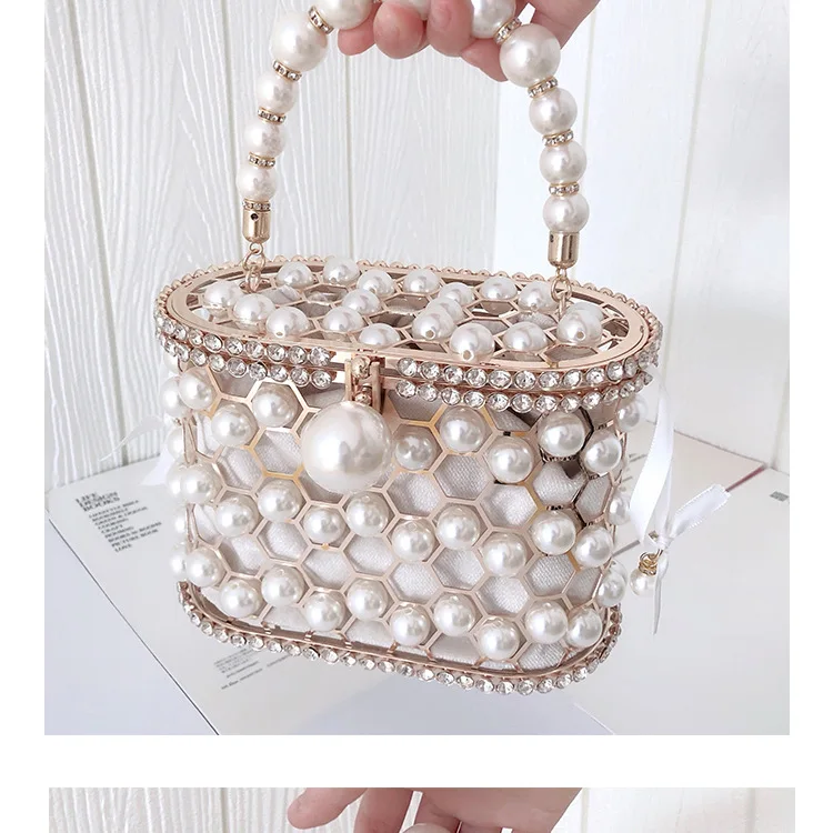 Ажурная мини-сумка-ведро с жемчужинами и цветами, Женский вечерний клатч, Роскошный дизайнерский Свадебный клатч с бриллиантами и бусинами