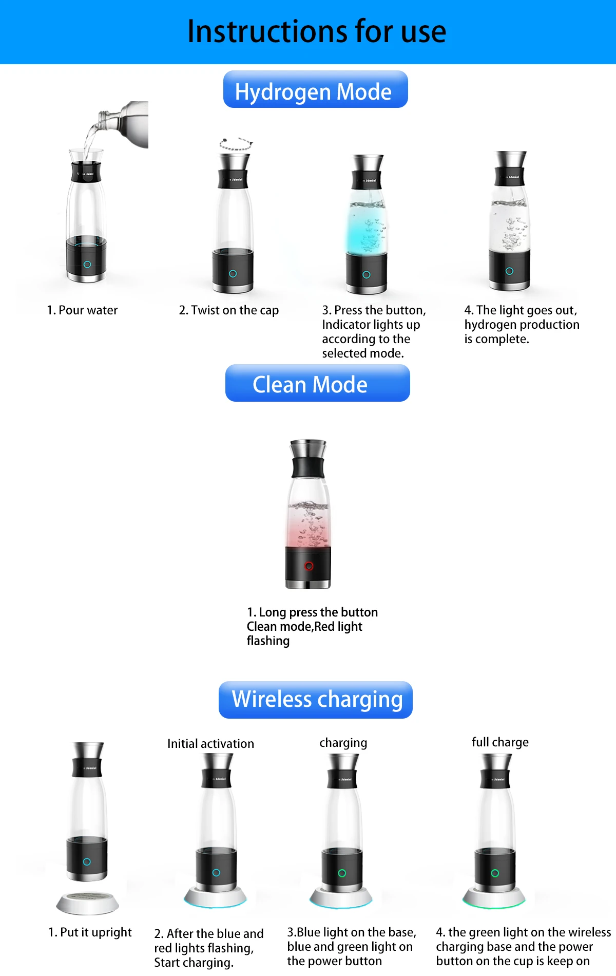 ● Использование продукта: он используется для производства богатой Водородом Воды для здоровья и красоты. Вода, богатая водородом, может эффективно удалять токсичные свободные радикалы, предотвращать окисление клеток, предотвращать болезни, улучшать метаболизм человека, задерживать чувствительность и улучшать качество кожи.