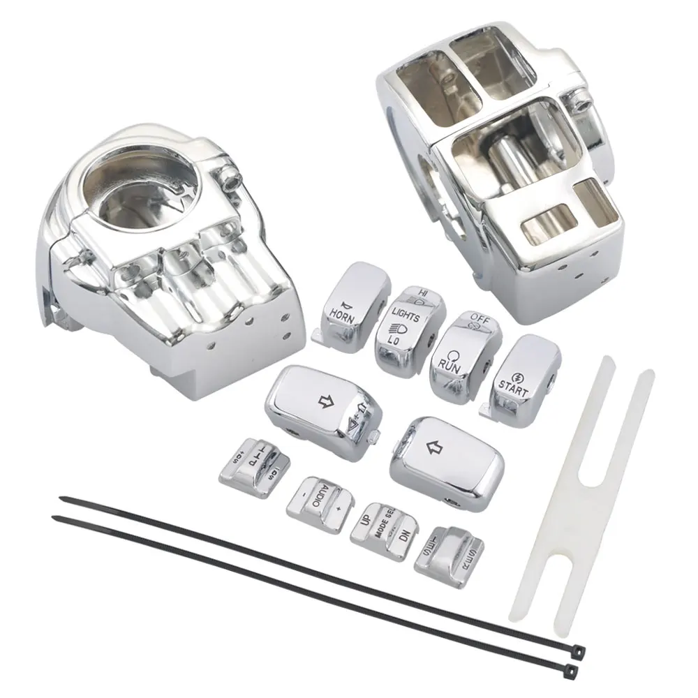 Комплект содержит полный набор хромированных корпусов переключателей и колпачков для левого и правого руля