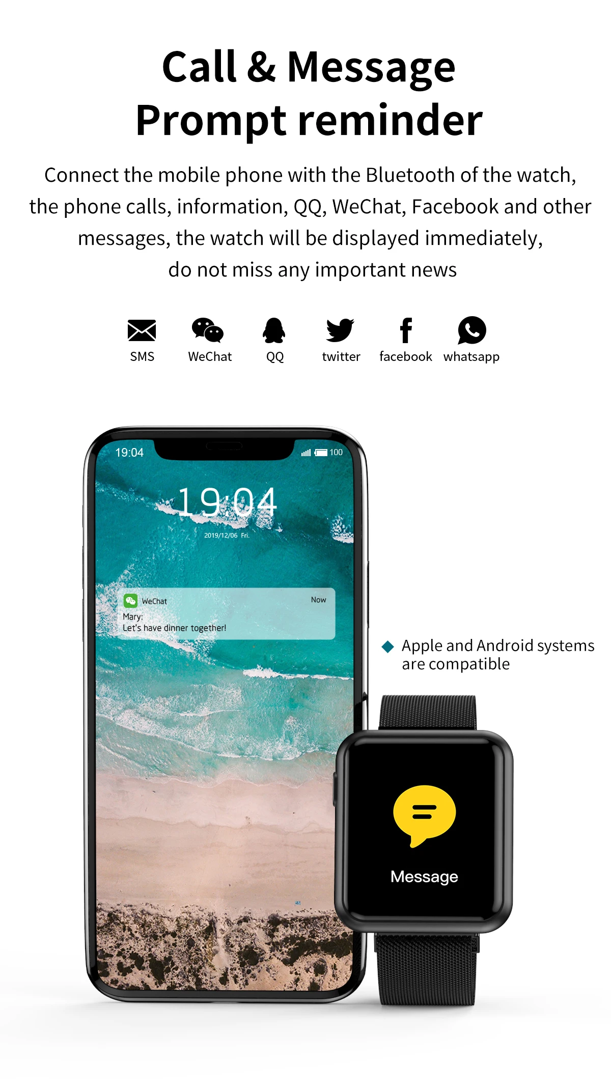 Введение функции браслета: Приложение GPS Спорт: бег, туризм, Велоспорт GPS трек, история записей, Спорт обмен треками, калории, расстояние, дисплей темп Приложение push уведомление напоминание: вызов, напоминание о контактах, SMS, QQ, WeChat уведомление о контенте напоминание, Facebook, Twitter, линия, SKYPE, WhatsApp, Kakaotalk, Instagram, уведомления о Snapchat напоминание о будильнике, напоминание о сидячем положении, переключатель напоминания о сообщениях Не беспокоить режим: используется для напоминание о сообщении не беспокоить Другие функции: Удаленное управление фотографией, встряхивание камеры, поворот запястья яркий переключатель экрана, настройка времени яркого экрана, секундомер, настройка яркости дисплея, настройка графика диска Размер: 46,3*40,3*12 мм Вес: 49 г голый металл, 79 г со стальным ремнем, 66 г с силиконом Google fitness: Синхронизация данных Здоровье Apple: Синхронизация данных