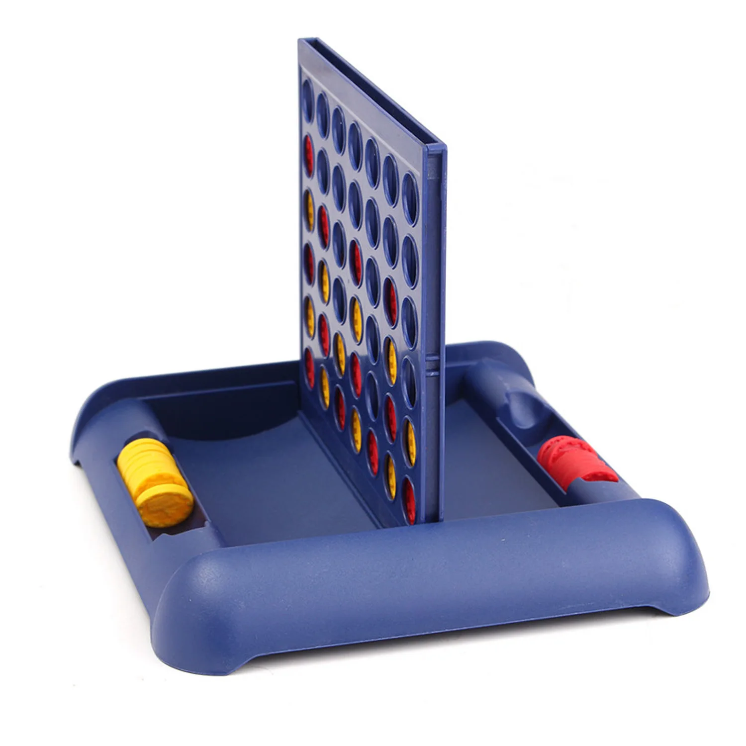 2. Затем установите середину доски и разделите желтые и красные части в две шахматные коробки. Каждый человек выбирает цвет предмета и начинает бросать его. 4 шахматы соединены в линию, чтобы выиграть.