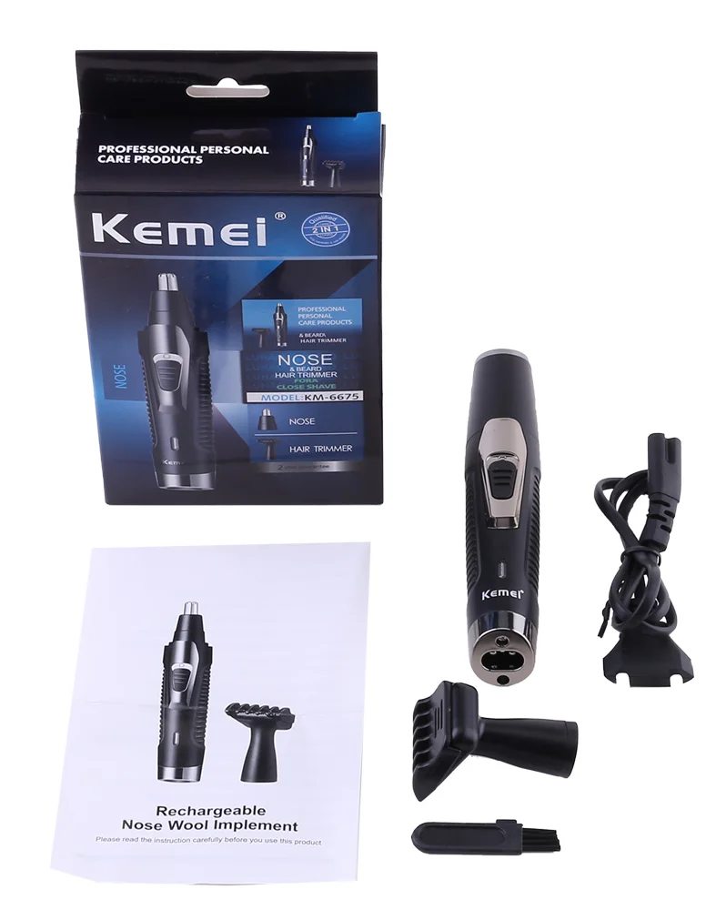 Электрический бритвенный триммер Kemei 2 в 1 для носа и ушей, бритва для стрижки бороды, Бритва для мужчин, безопасный набор инструментов для ухода за лицом
