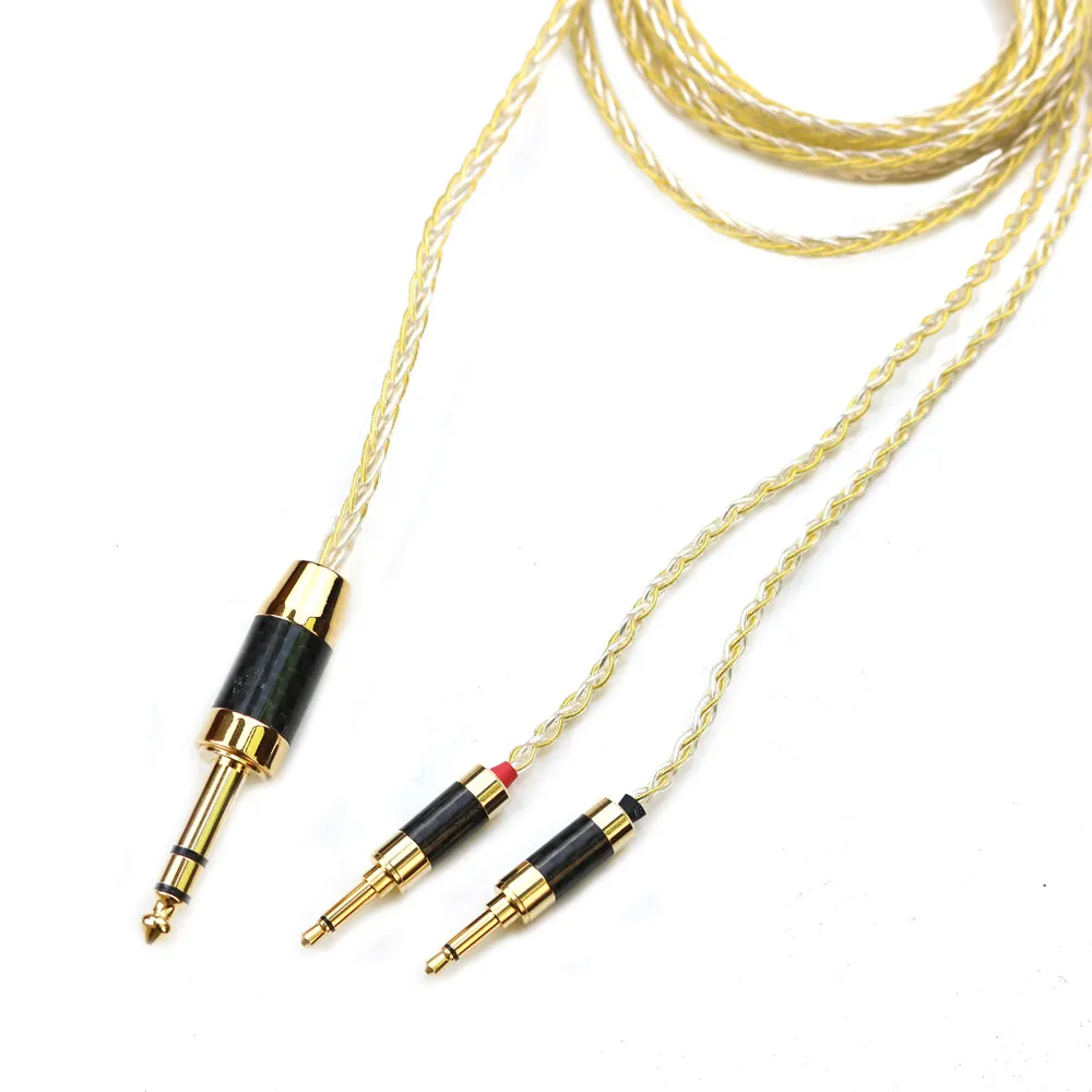 Технические характеристики: Цвет: Золотой и Серебряный Материалы кабеля: Внутренние кабели покрыты золотом и серебром, а внешние кабели-плетеные кабели Разъем: 3,5 мм/6,35 мм 2, 3,5 мм Работа с классическими наушниками Meze 99/наушники Elear Focus