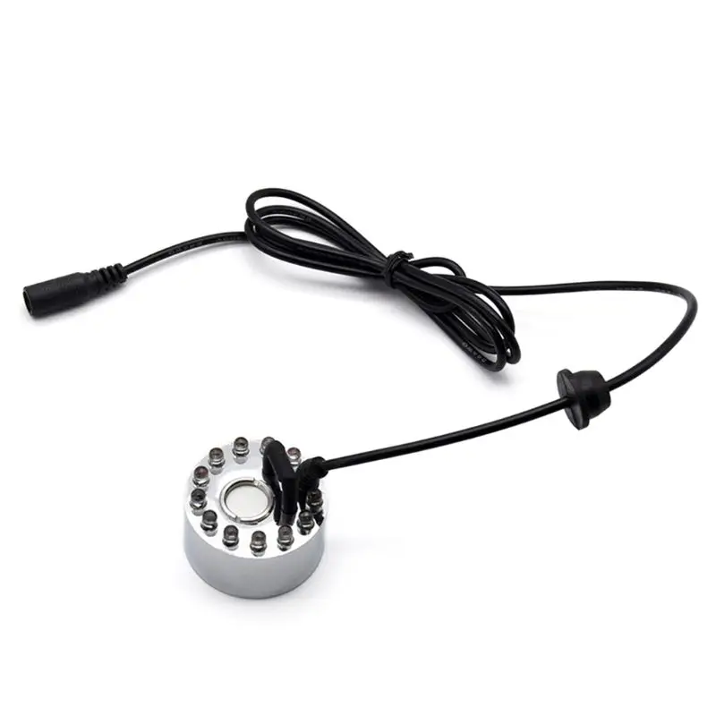 Ultrasonic Mist Maker Generator Fogger Nebulizer Water Fountain Pond 12 LED Atomizer Air Humidifier US/UK/EU/AU Plugbrand new and high quality Features: Excellent visual effect: Using the latest atomization technology, water can be diffused into the air. Add amazing clouds and fog effects. Perfect kit: The kit contains the atomizer and the transformer. Just plug it in and put it in the water to use it. Silent security: Adopts advanced nanotechnology, which does not make noise and does not affect others. If the water level is below the sensor, the product will automatically stop working. High quality material: Made of good quality plastic and metal, strong, durable and long term use. Wide application: Ideal for indoor or outdoor fountains, water feature, and office. Mist Maker Kit only, other accessories demo in the picture is not included. Caution for use: 1 . Do not turn over the Mist Maker When the switch is turned on,keep upright,or it may damage the atomizer. 2 . Please ensure that the daily running time is less than 10 hours, otherwise the life of atomizing slice will be shorted. 3 . Don't touch the atomizing slice while the Mist Maker is working. 4 . Ensure the water at high quality, use clean tap water.(water quality deterioration may influence the lifetime) 5 . Please switch off the power before Movement or maintenance. 6 . The atomizing slice is consumable,and its service life is≥3000 hours.If marked reduction of Mist present, please clean atomizing slice with a cotton swab (don't need to use any detergent).Keep it clean. Specification: Power: 24W Input: 110 -240V 50-60Hz Operating Voltage: DC 24V Maximum Mist Production: 250ml/h Best Position in Water: 5 to 7 cm Material: Plastic, Metal Dimensions: app.4.6x3.8cm/1.81x1.5in Color: Silver with Black Optional Plug: US/UK/EU/AU Plug Quantity: 1 Set Note: Please allow 0-1cm error due to manual measurement. pls make sure you do not mind before you bid. Due to the difference between different monitors, the picture may not reflect the actual color of the item. Thank you! Package Contents: 1 x Mist Maker 1 x Power Adapter