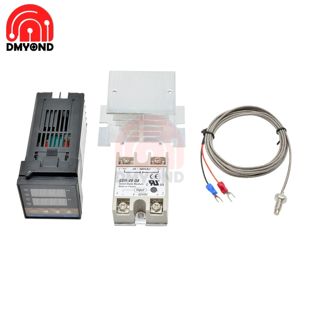 REX-C100, цифровой дисплей, термостат, регулятор температуры, реле, выход, без сигнализации, Тип K, вход + реле 40DA SSR + датчик 1 м 2 м