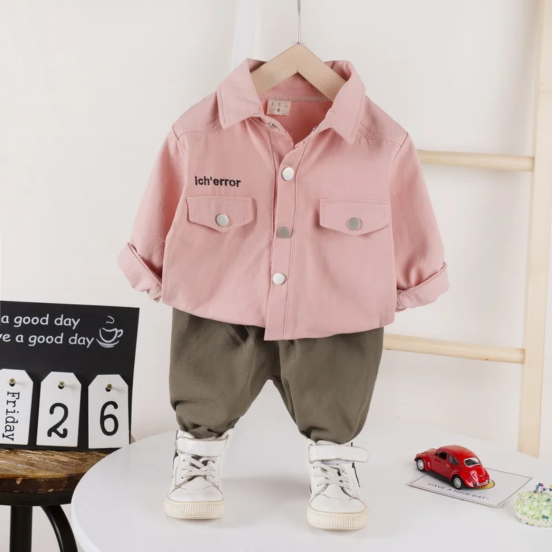 Новая весенне-осенняя одежда для маленьких мальчиков детская хлопковая куртка с буквенным принтом, штаны 2 шт./компл., модная одежда для малышей спортивные костюмы для От 0 до 4 лет