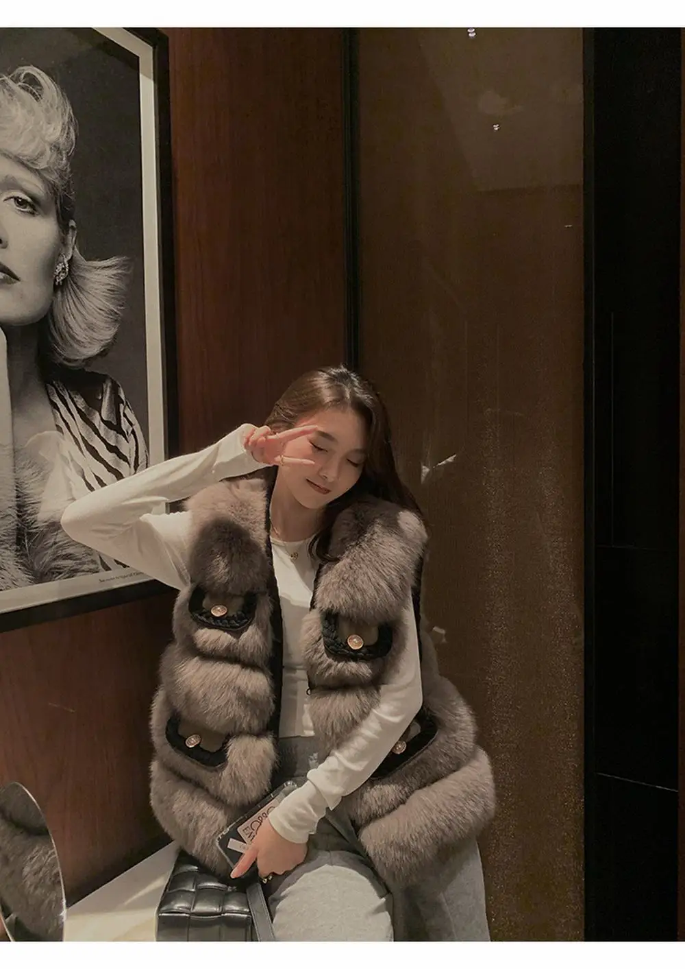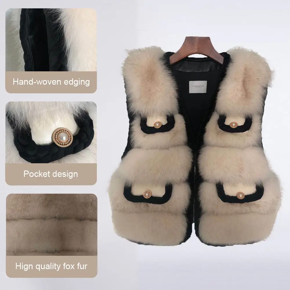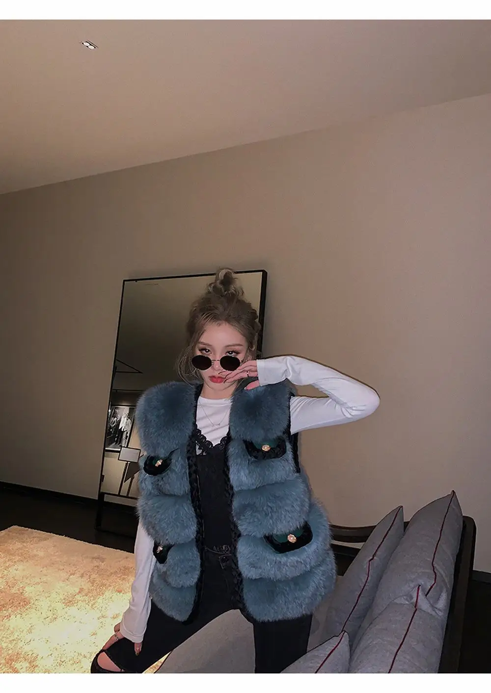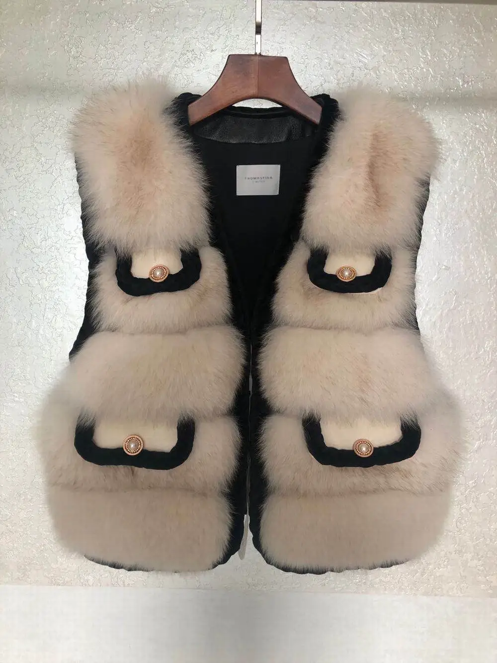 Thomas Tina, новинка 2020, в июле, 100% натуральный синий жилет из лисьего меха, женский жилет высокого качества с натуральным красным лисьим мехом, женский жилет