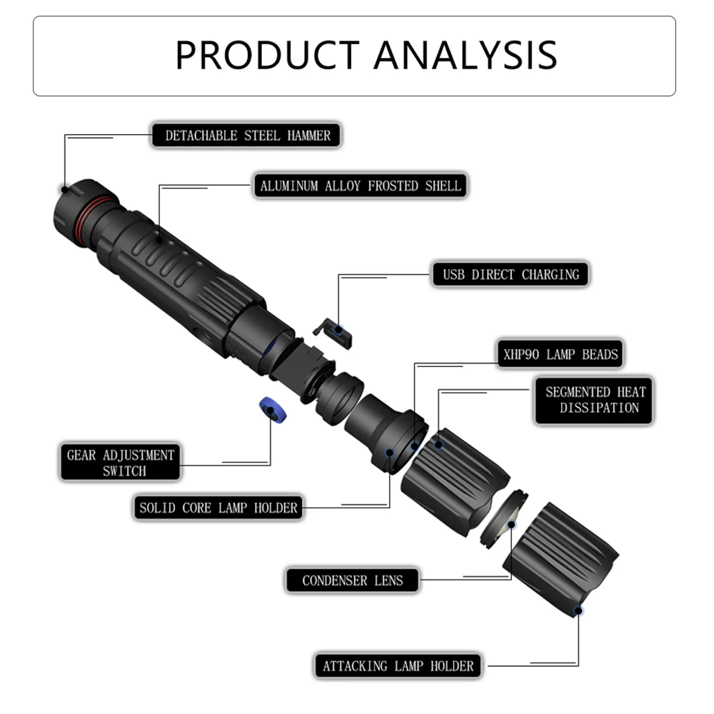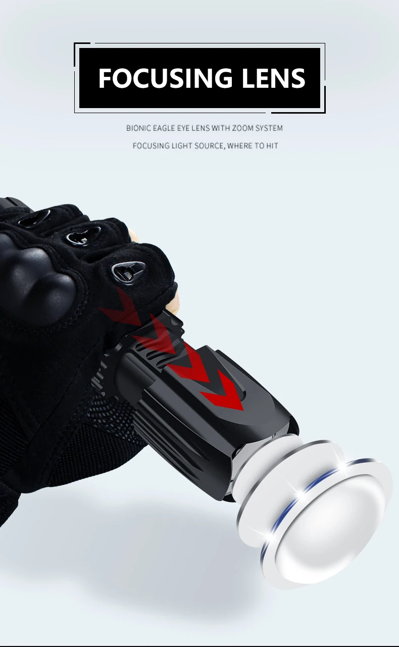 Мощный светодиодный фонарик использует светодиодный светильник XHP50 для максимальной выходной мощности до 30000 люменов.