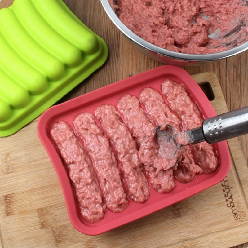 Колбаса ручной работы, удобная форма для выпечки, без необходимости в овечьем кишечнике, вы можете наслаждаться сосисками ручной работы без колебаний, потому что это домашний, нежный вкус, что вкус мяса прочно ощущается, термостойкий силикон, сделанный таким образом, нагрев в духовке в порядке