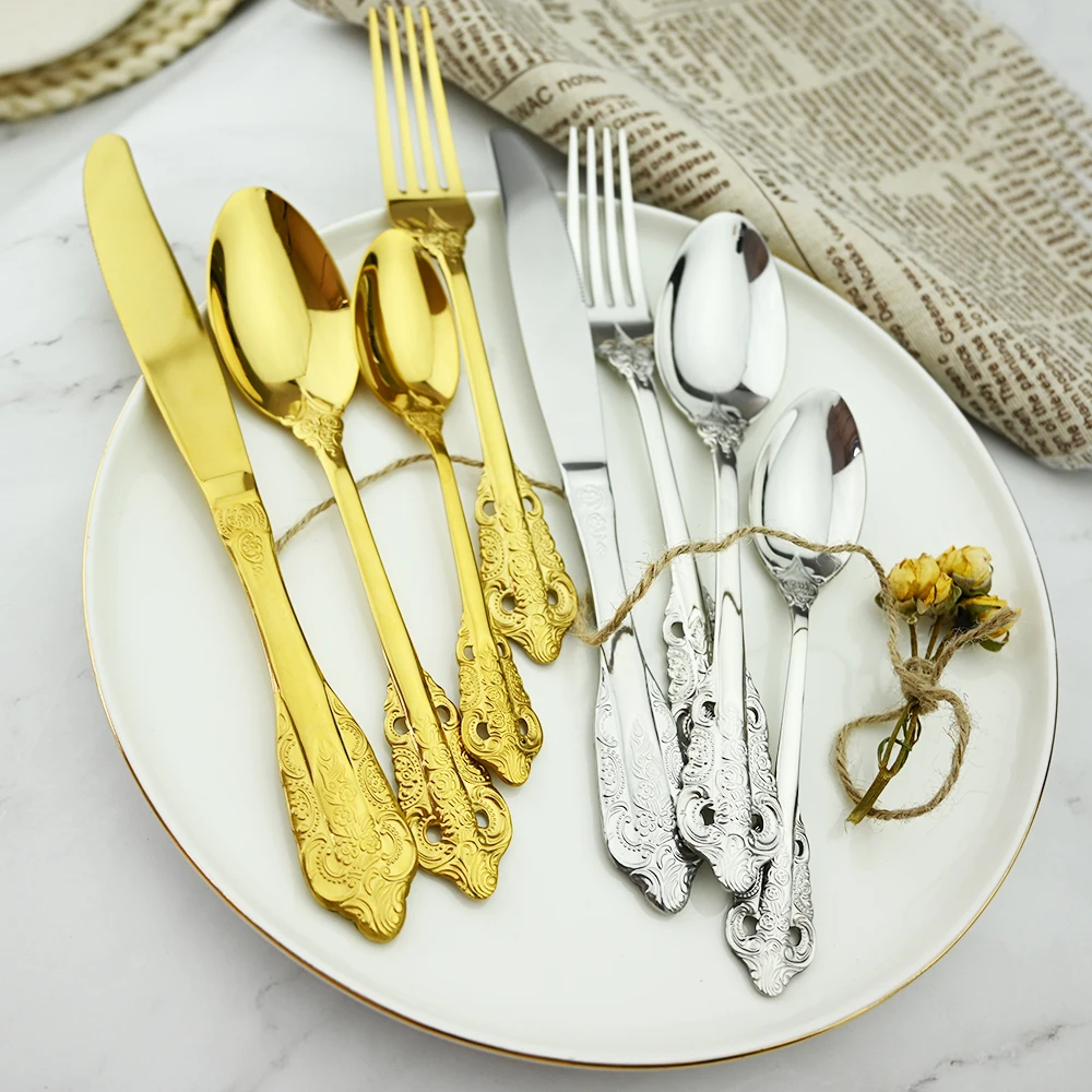 Всего 24 штуки в комплекте, в комплект входят 6 ножей для ужина, 6 ложек для ужина, 6 вилок для ужина, 6 чайных ложек.