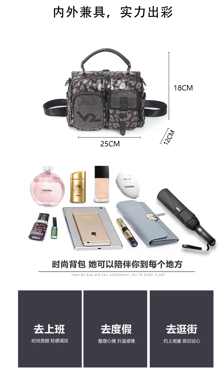 Роскошные дизайнерские сумки с бриллиантами, Сумка с заклепками и блестками из натуральной кожи, Женская Ручная сумка, новинка 2020, леопардовая женская сумка через плечо