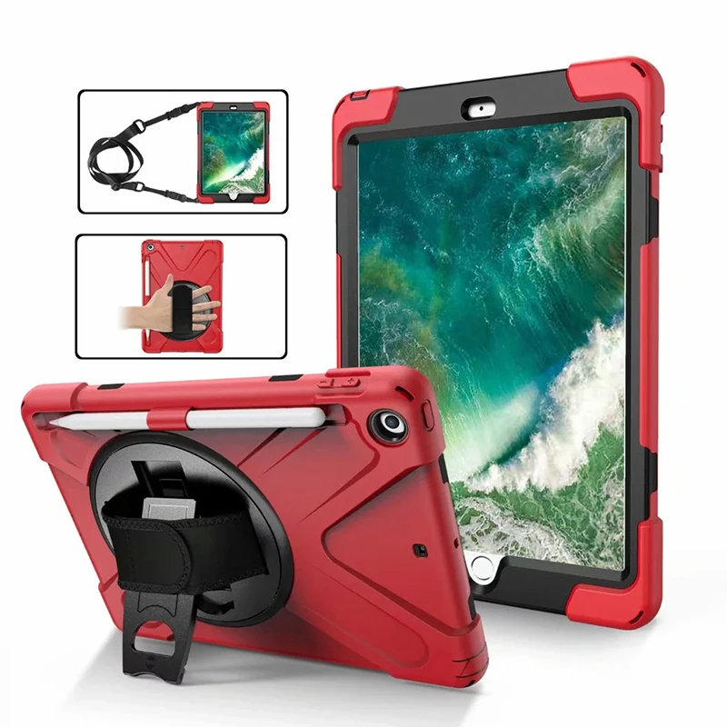 3. Универсальность: расположен на задней части корпуса для ipad 9,7 2018 2017, встроенная вращающаяся на 360 градусов подставка и регулируемая рукоятка обеспечивают гибкий и удобный способ использования планшета для работы на открытом воздухе. 4. Гибкий плечевой ремень: прикрепляя ремешок к любым двум отверстиям и подстраивая под удобную длину, Чехол для iPad 9,7 2017 2018, можно носить вертикально или горизонтально более безопасным способом во время любых мероприятий на свежем воздухе. Примечание:Хроматическая аберрация неизбежнаЕсли вам это очень важно, пожалуйста, внимательно разместите заказ. Упаковка включает в себя:1 чехол из искусственной кожи