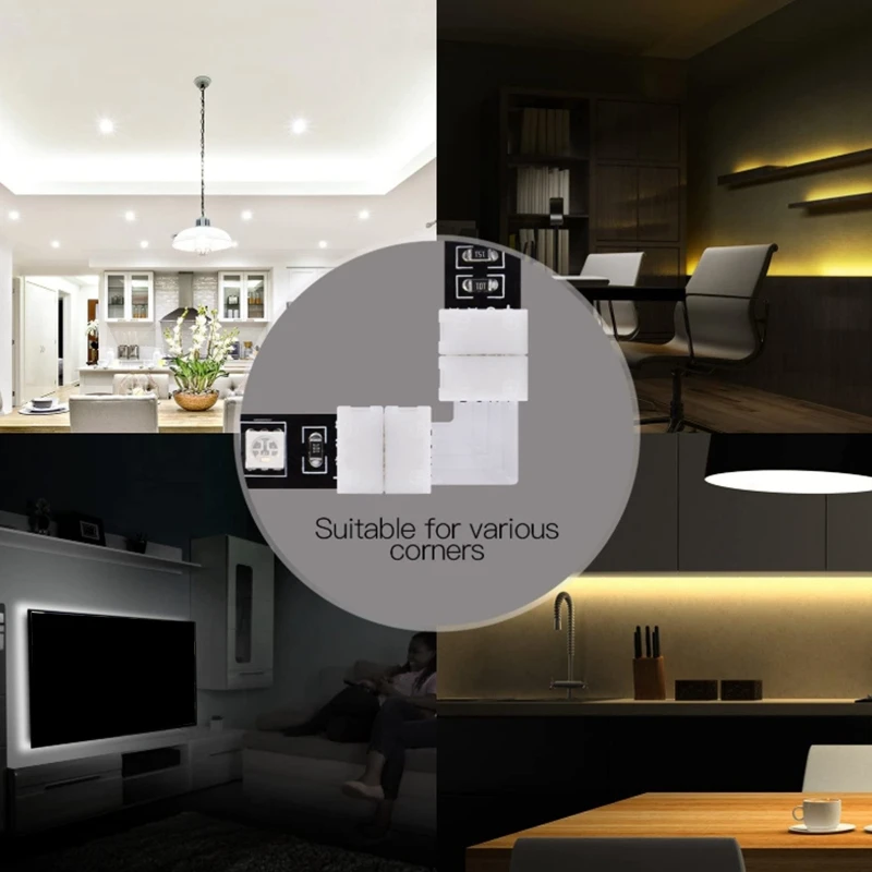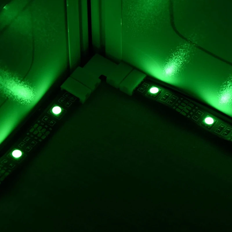 Эти L соединители форм для RGB многоцветный светильник-полоски поставляется с 2 легко-зажимными соединителями и 90 градусов l-образной печатной платы. Вы можете прикрепить светильник с помощью полосок непосредственно без каких-либо инструментов или использования. Беспроводная конструкция обеспечивает бесшовную раскладку, когда вам нужно прикрепить светильник к острым углам. Они совместимы как с непромокаемыми, так и с водонепроницаемыми лентами на светильник RGB 10 мм.
