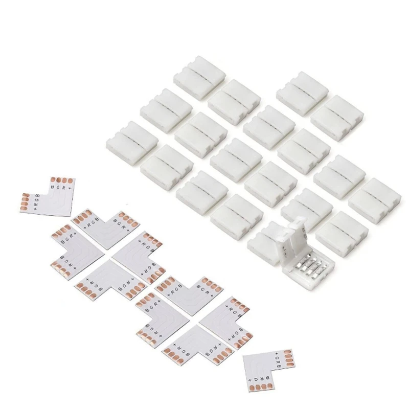Простота в использовании: l-образный 4-контактный светильник 10 мм легко устанавливается. Просто вставьте светильник в разъем и Зажмите крышку (не нужно припаять). Идеально подходит для подключения угловых полос под прямым углом.
