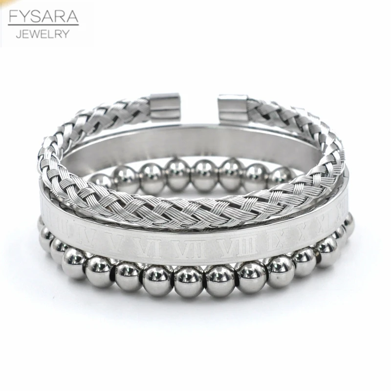Товар: королевские римские браслеты FYSARA и браслеты с бусинами для мужчин и женщин, 3 шт./1 комплект, браслеты из нержавеющей стали, 5 цветов, браслет