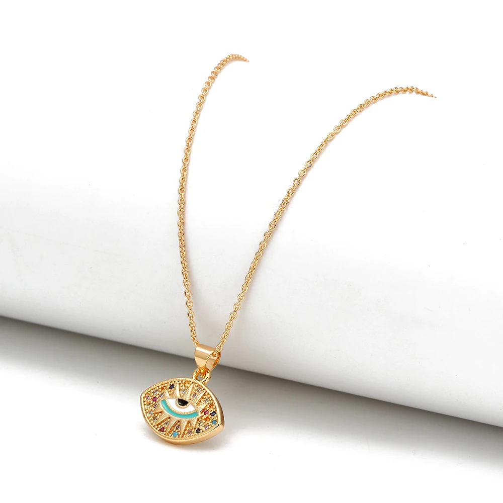 Материал: медь Цвет цепочки: цвет розового золота Размер: как на картинке Форма Подвески: Турецкий Дурной глаз, ручная работа Посылка: OPP Bag