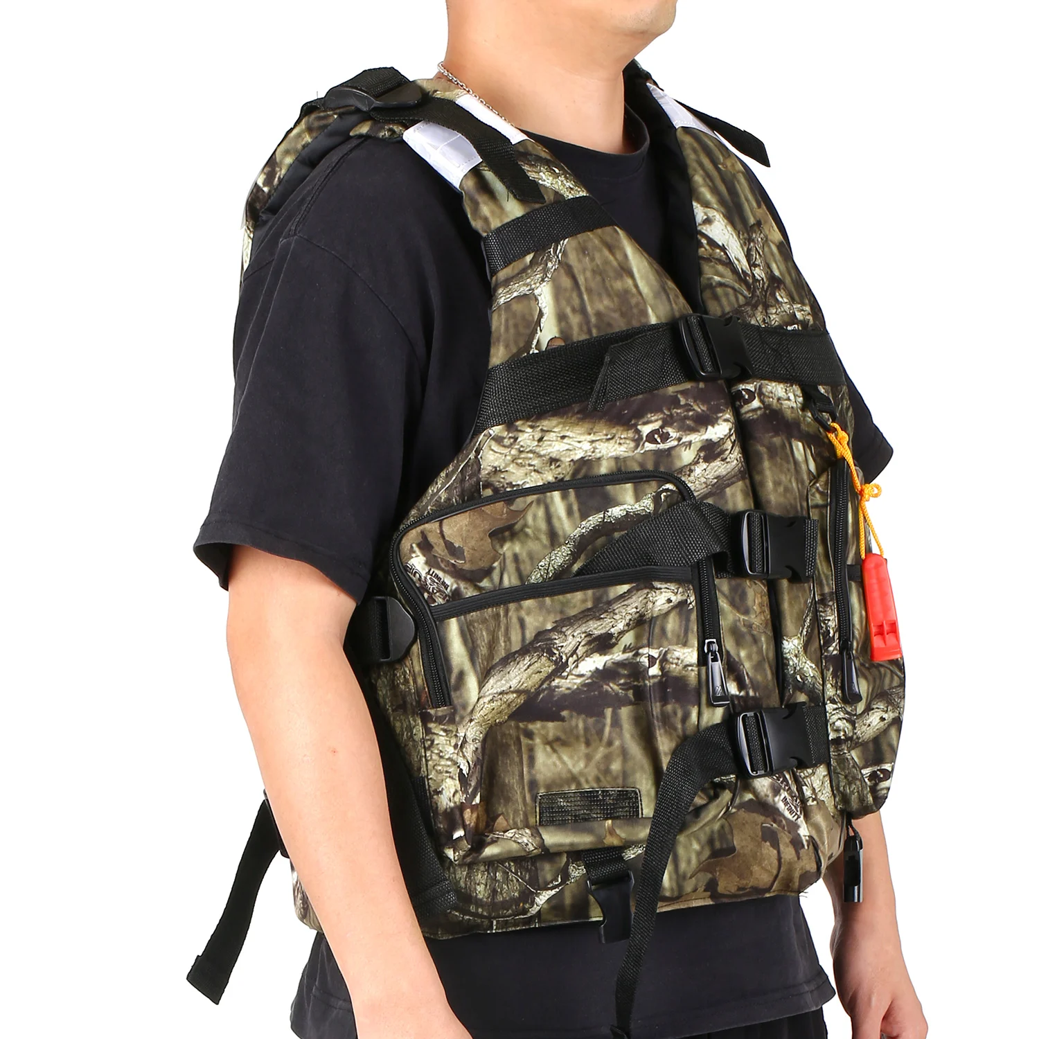 Этот спасательный жилет изготовлен из устойчивой к царапинам ткани из полиэстера и легкой флоационной пены для долговечности. Он имеет два кармана на молнии и два открытых кармана, чтобы обеспечить достаточно места для хранения ваших вещей. Дизайн с тремя пряжками, регулируемые лямки и открытые бока делают куртку надежно и комфортно на вас. Светоотражающие панели повышенной видимости и прилагаемый свисток помогут повысить безопасность во время занятий водными видами спорта, такими как каяк, рыбалка, парусный спорт, водные лыжи и многое другое.