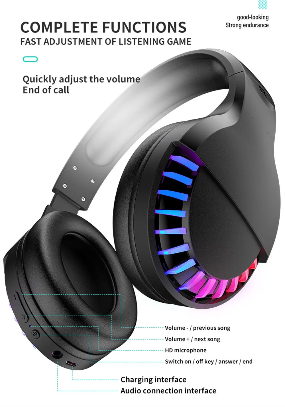 Беспроводные наушники Bluetooth RGB светящиеся беспроводные Игровые стереонаушники