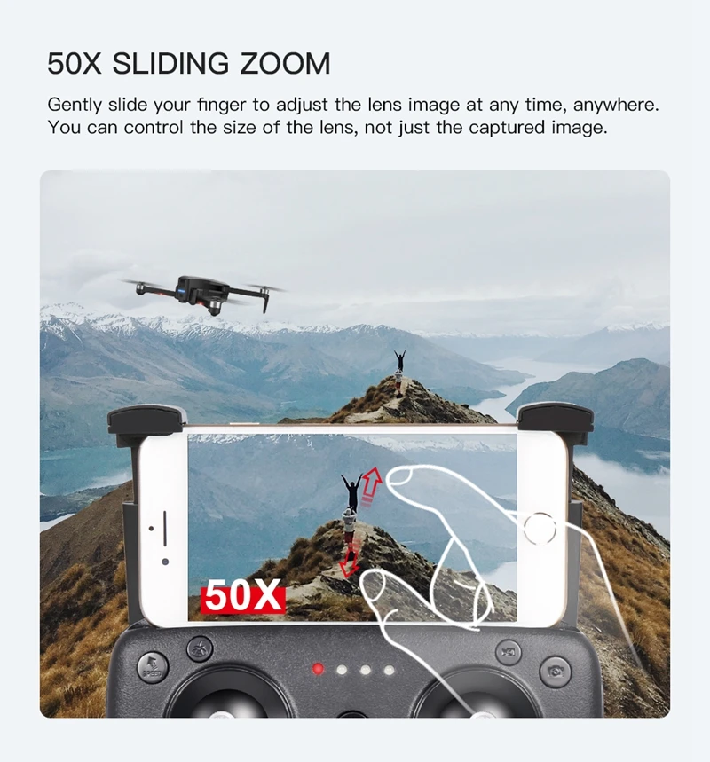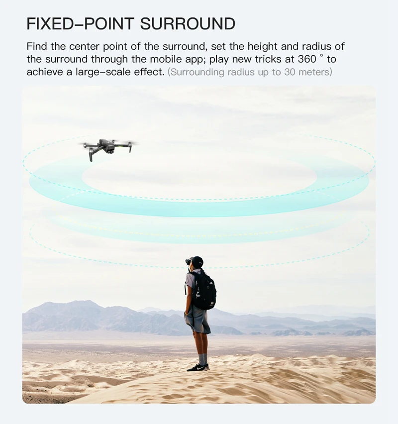 Функция: складная, запуск одной кнопкой, посадка одной кнопкой, удержание высоты, постоянная оптическая подача, двойная камера, Wi-Fi подключение, управление приложением, фото жестов, запись жестов, следующее: Inteiiigent IPP, следуя режиму me, управление ладонью (вверх вниз влево вправо), полет точки пути, точки заинтересованности, контроль скорости, Передача в реальном времени, MV изображение и видео обмен, GPS возврат домой.