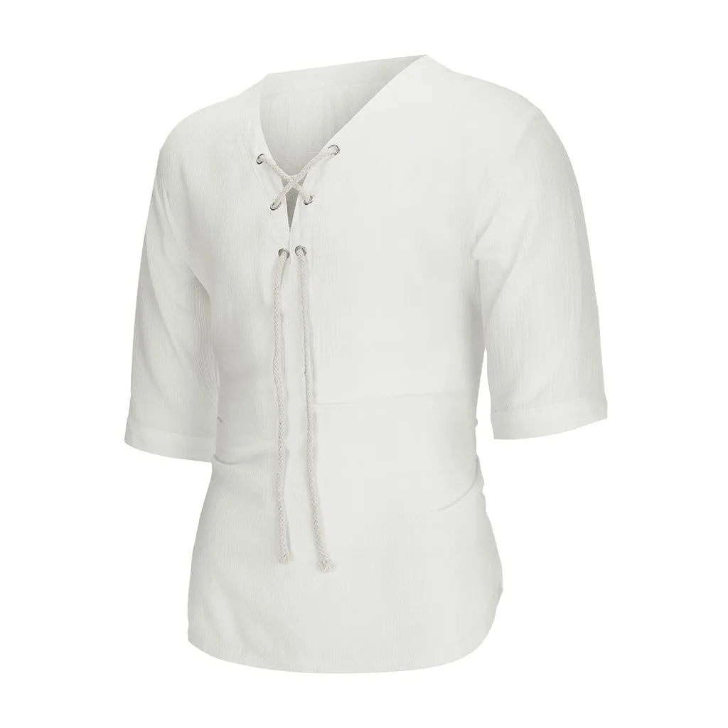 Мужской новый стиль ретро Чистый хлопок и пеньковая Половина рукава модный Индивидуальный Топ