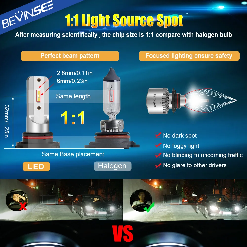 -Напряжение: 9-36 в (подходит для автомобиля 9-32 В) Электрический ток: 898mA-2560mA Нормальное рабочее Входное минимальное напряжение: 12 В Нормальный рабочий входной Минимальный ток: 2,65 A Нормальное рабочее Входное Максимальное напряжение: 32 В Нормальный рабочий вход Максимальный ток: 0,898 A -Подходит: головной светильник/противотуманный светильник/Дальний свет/ближний свет -Тип установки: прямая замена -Функция: сменный галогенный ксеноновый светодиодный светильник -Другой доступный Тип: противотуманный светильник -Светодиодный Тип: 2 боковых светодиодных чипа CSP каждая лампа -Контроль тепла: корпус из твердого алюминия -Герметичный корпус: пылезащитный и водонепроницаемый -Угол луча: угол луча 360 ° -Срок службы:>5000 часов