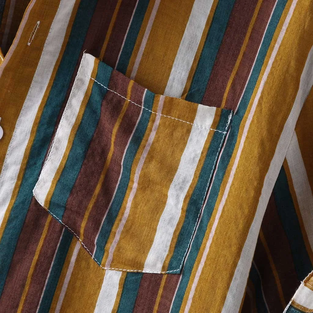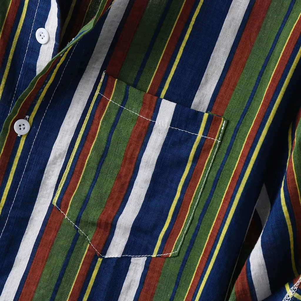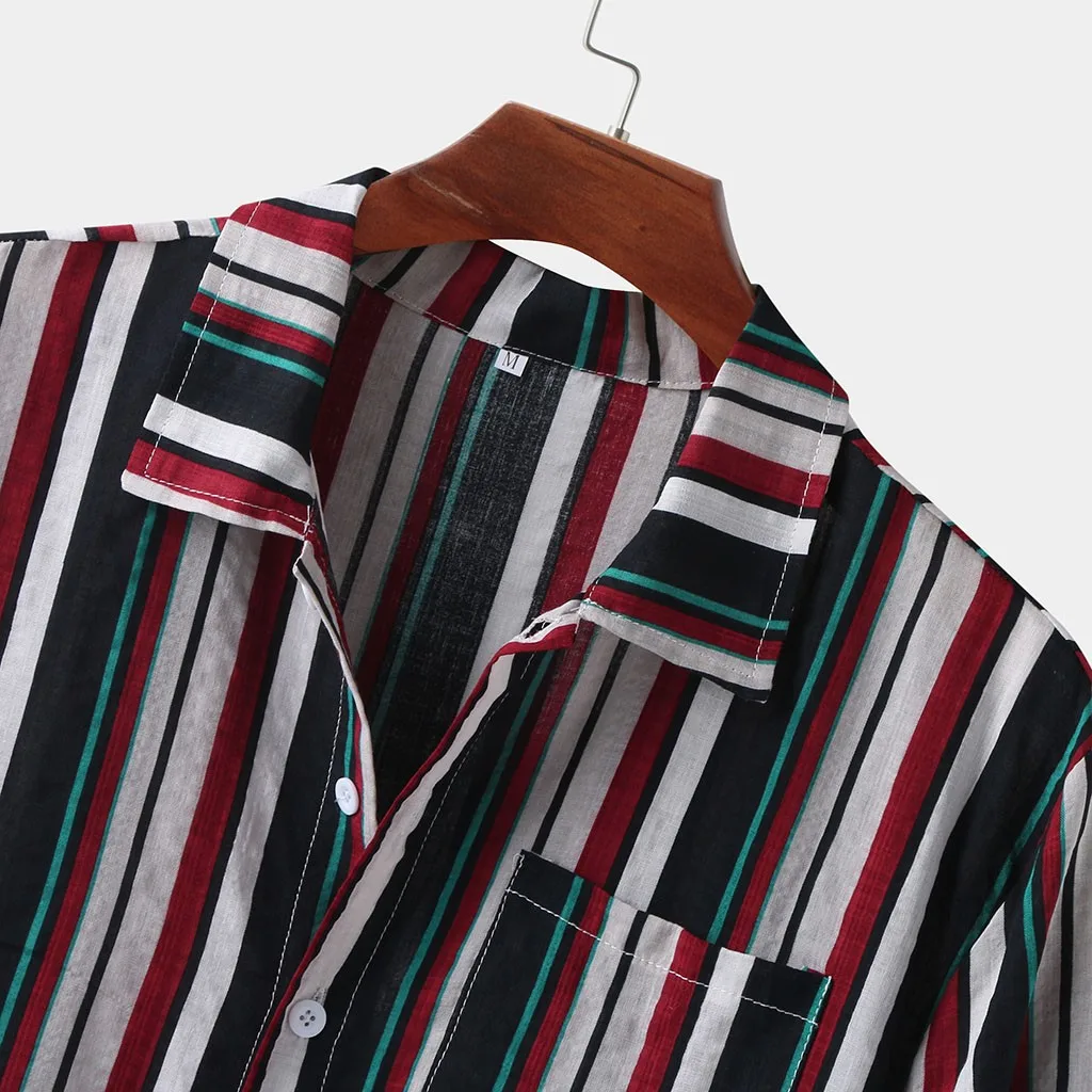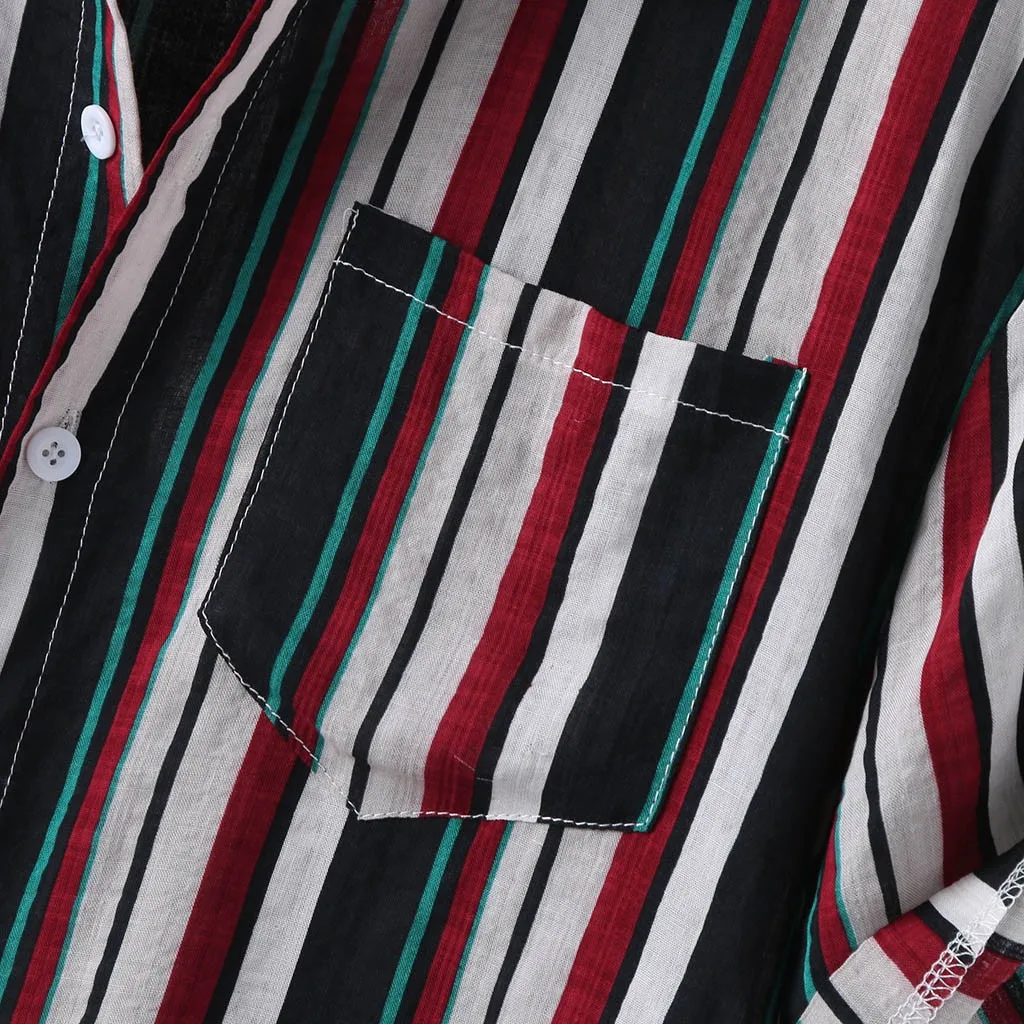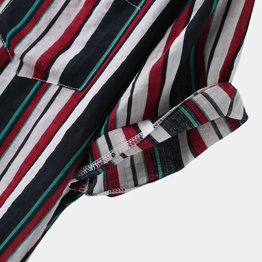 Мужская полосатая летняя свободная Гавайская Повседневная рубашка с коротким рукавом и пуговицами