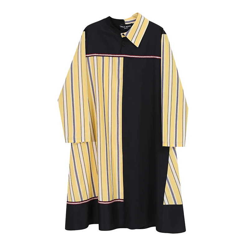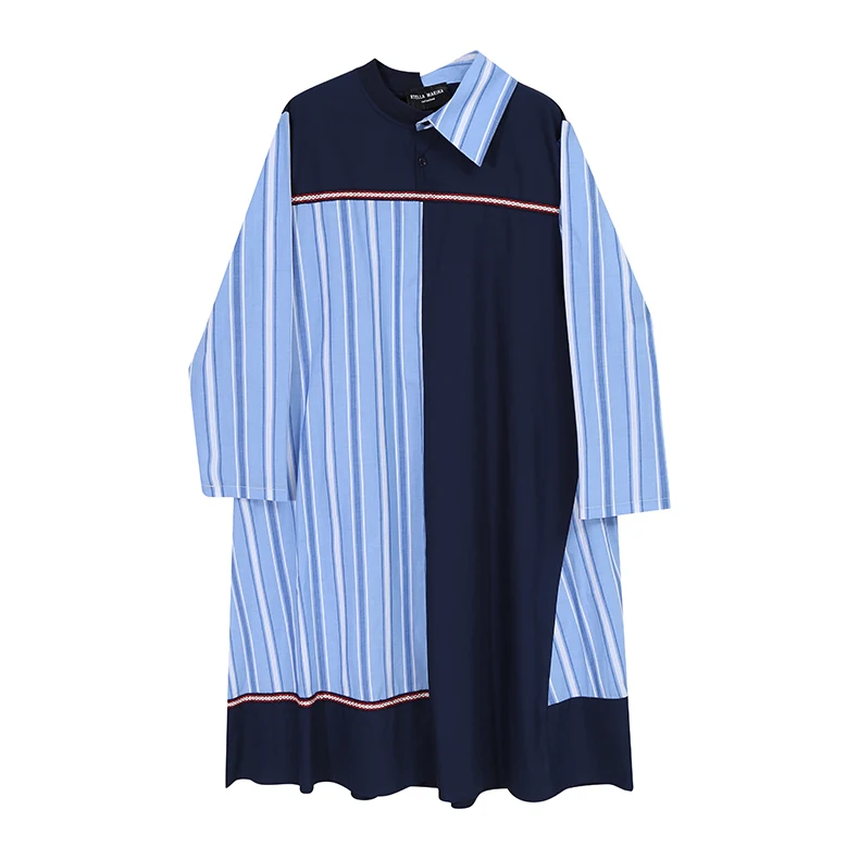 Новая женская мода 2020 осеннее синее желтое лоскутное платье-рубашка в полоску размера плюс дамское повседневное свободное платье Стиль Vestidos 6526