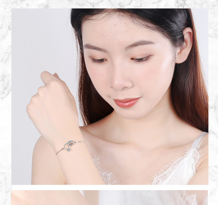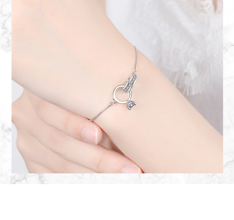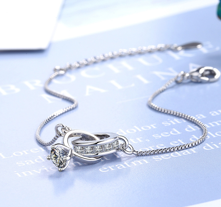 Браслет MIQIAO из стерлингового серебра с двойным кольцом в Корейском стиле с цирконием и бриллиантами для женщин и девочек, Модный Ювелирный браслет на запястье