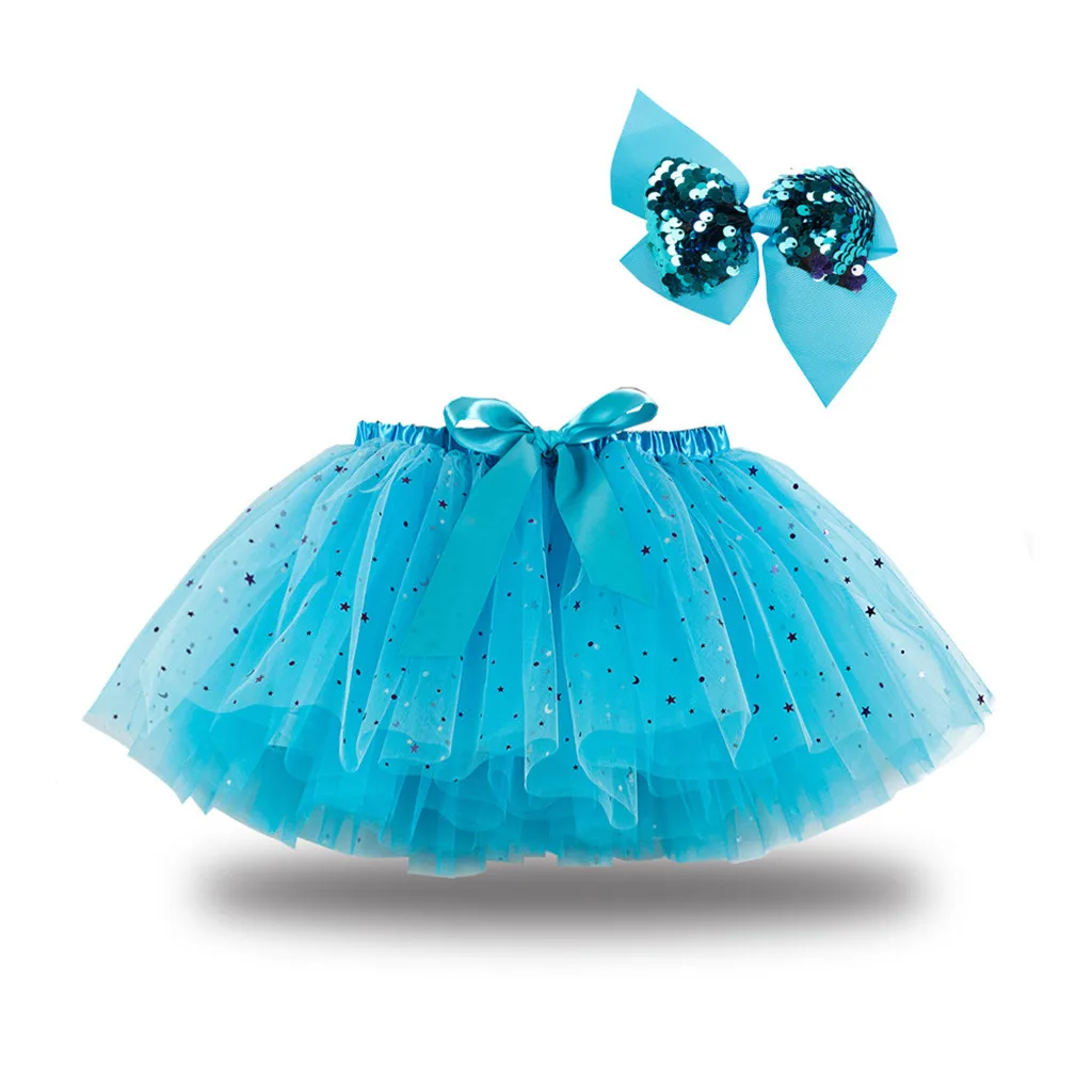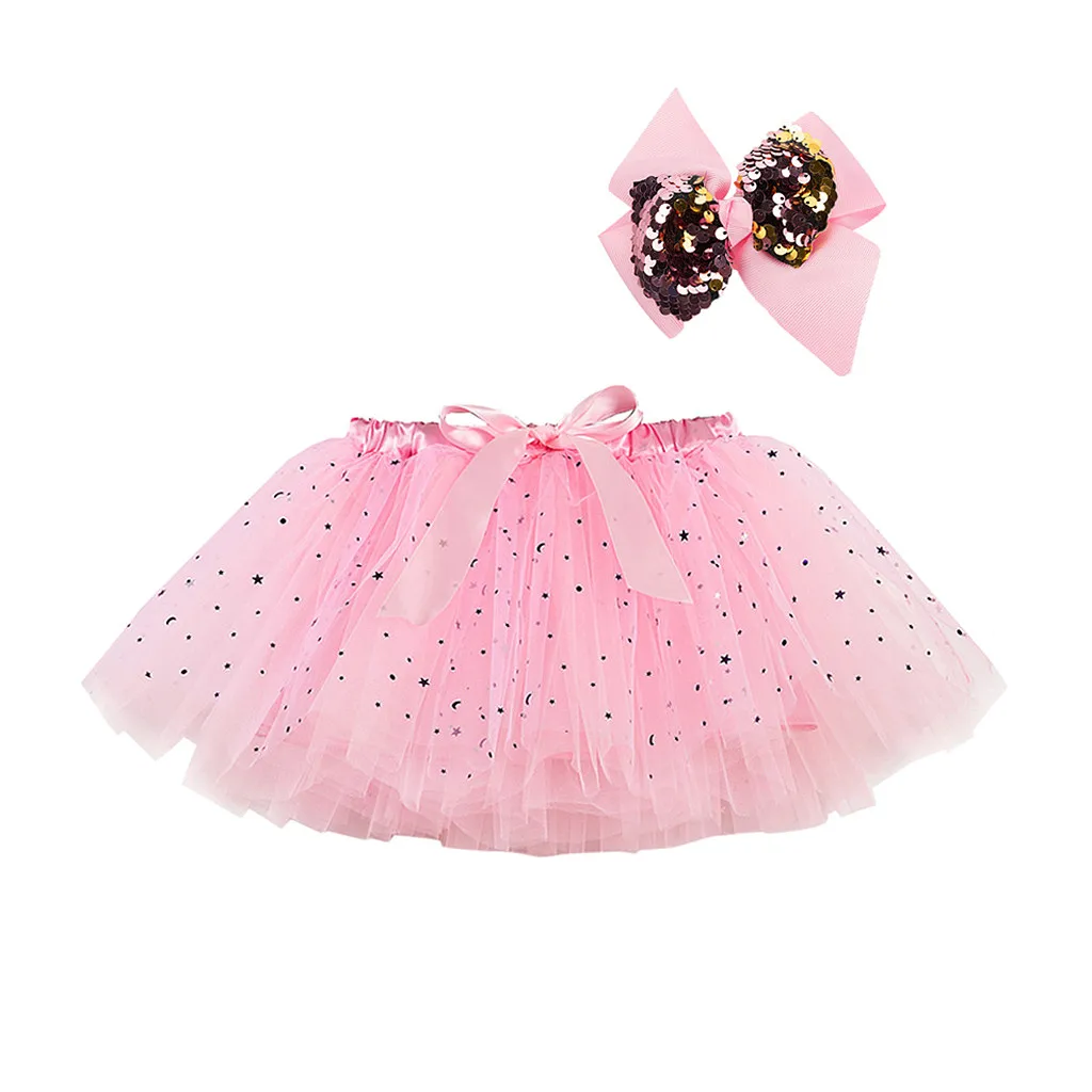Вечерние танцевальные балетные костюмы для девочек; Юбка из тюля с блестками и звездами + заколка для волос с бантом