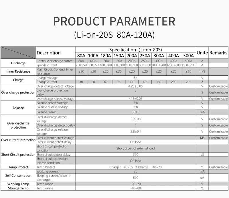 1. DL20S 72V Smart BMS 80A 100A 120A bms можно использовать для 17S Li ion или LiFePO4 или аккумулятор лто pack. Клиент может отрегулировать paramter перезарядки или переразряда параметр сидя и другие параметры, если клиенту нужно использовать какой тип батареи для той же серии батареи.