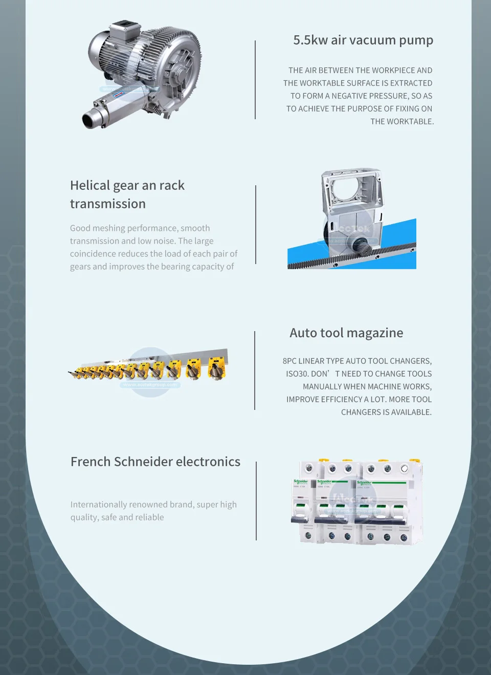 7. Благодаря итальянскому высокочастотному электронному шпинделю воздушного охлаждения и серводвигателю мирового класса и системе вождения.