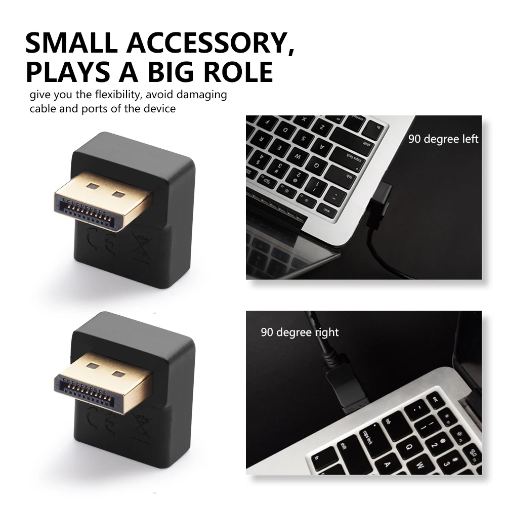 2) Эти угловые адаптеры DP не предназначены для вставки на дисплеи (молдинг DP male не является достаточно длинным, чтобы получить доступ к концу DP female вашего монитора).