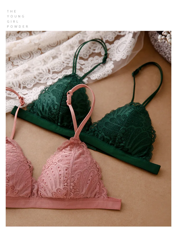 Французский стиль, бюстгальтер без косточек, маленькая грудь, нижнее белье, трусики для девушек, без стального кольца, бюстгальтер для девочек, хлопок, треугольная чашка