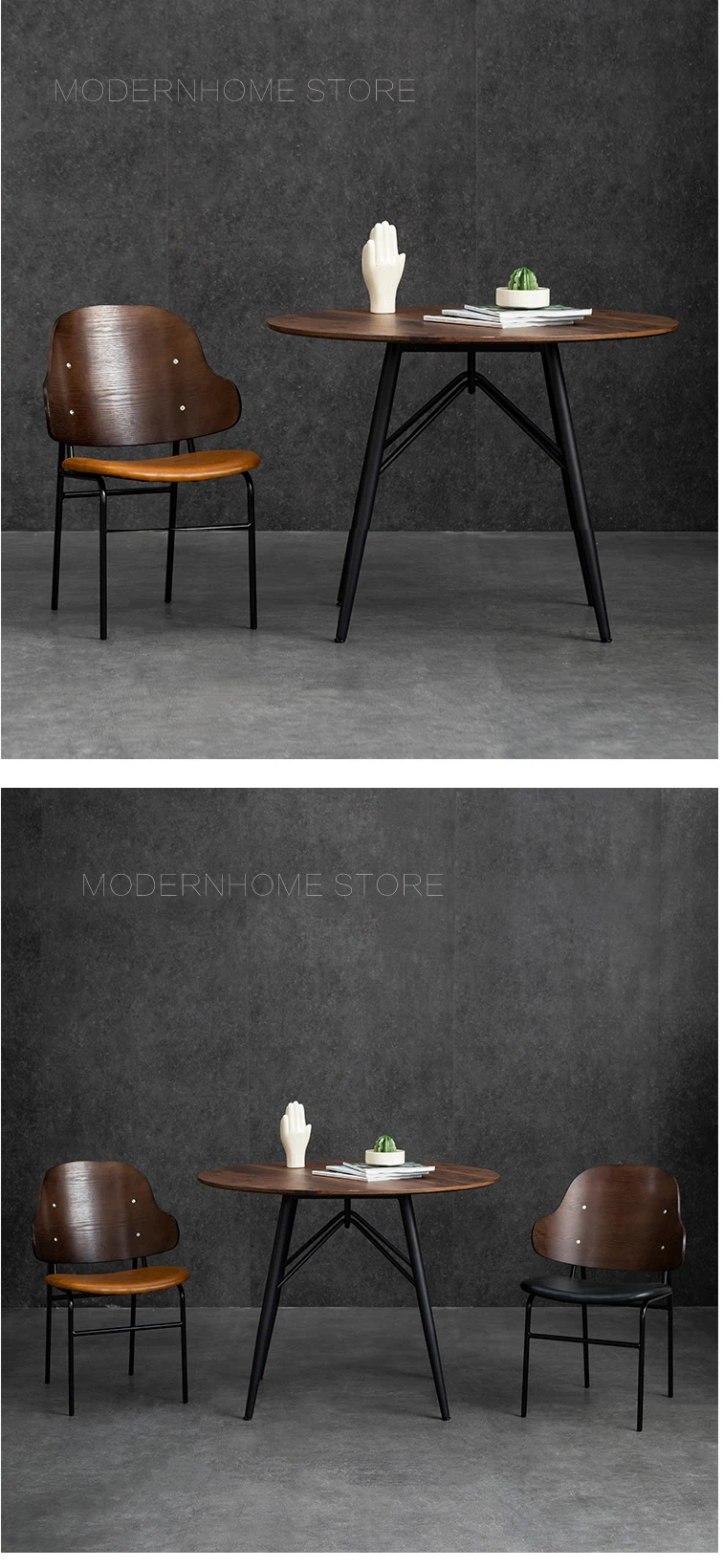 Современная мода, роскошный Скандинавский дизайн, цвет грецкого ореха, деревянный металл, искусственная кожа, креативный коврик, мягкое покрытие, обеденный стул, 1 шт. Цвет древесины: грецкий орех Нога: черная Цвет подкладки: черный или коричневый