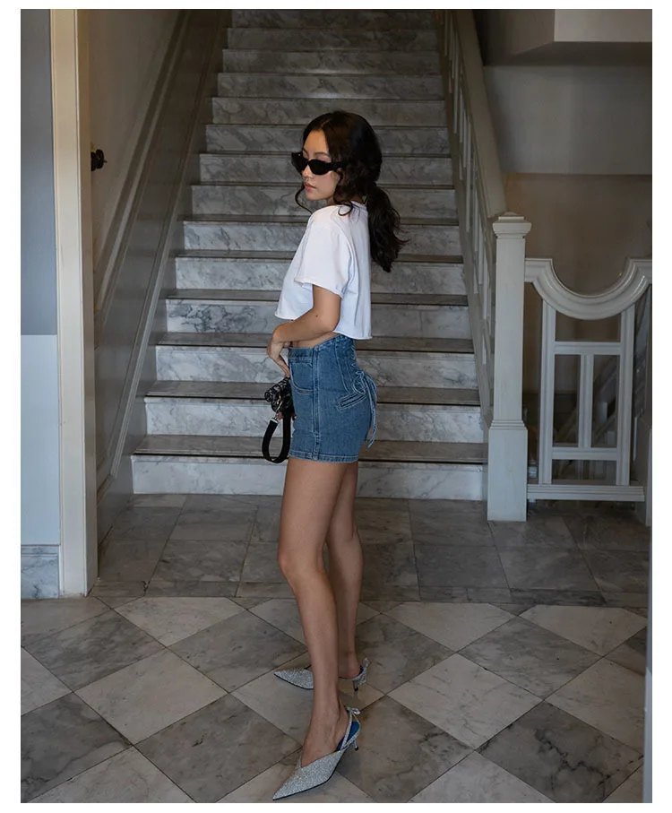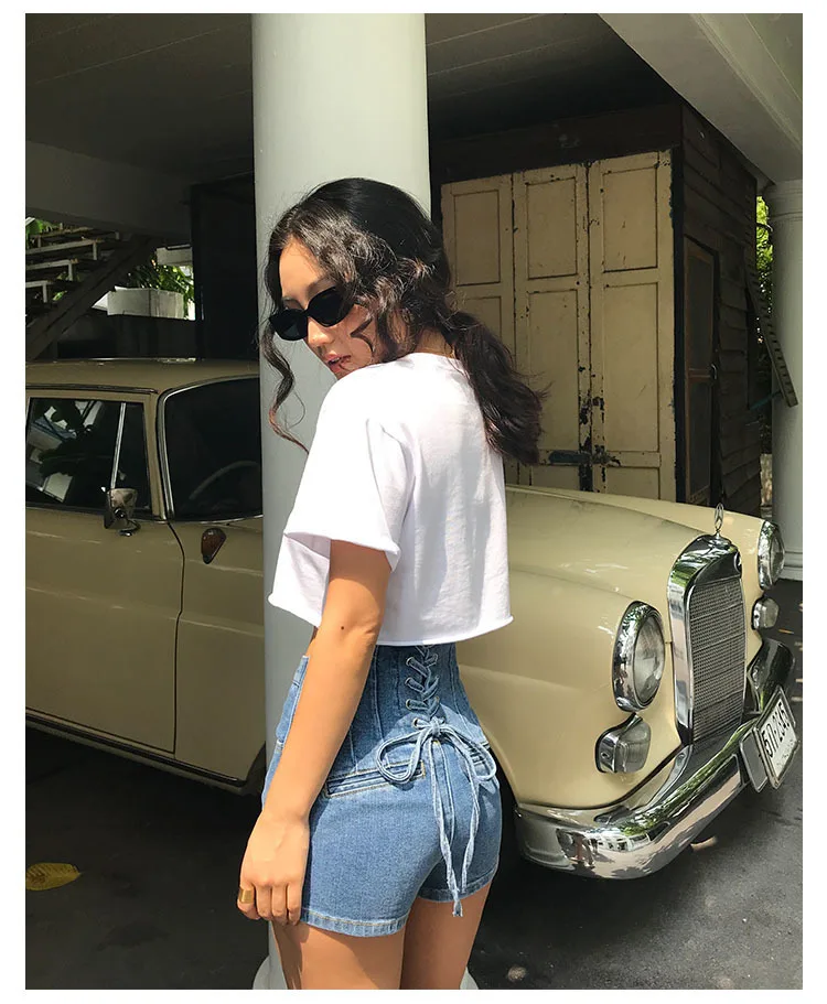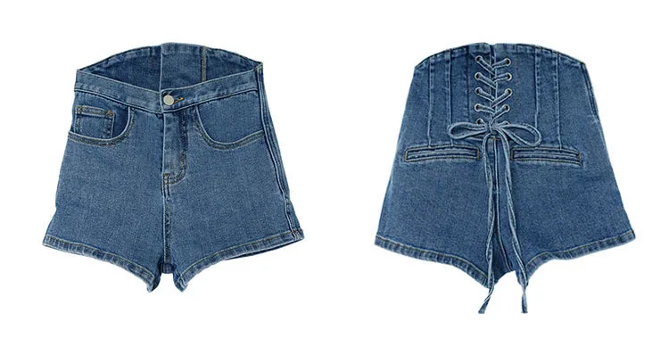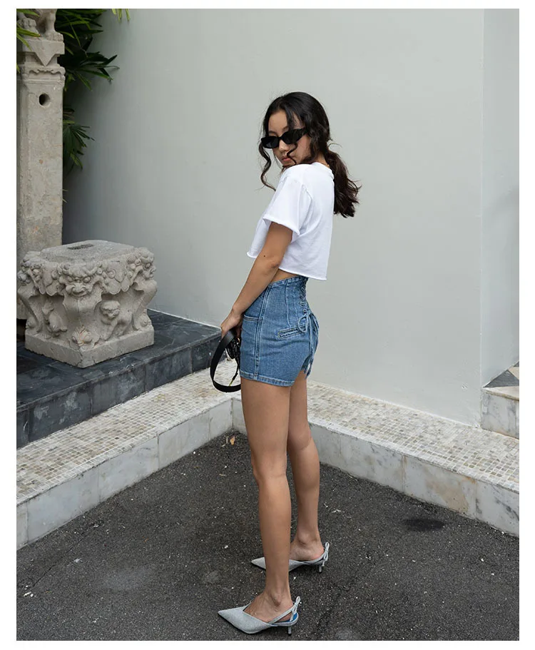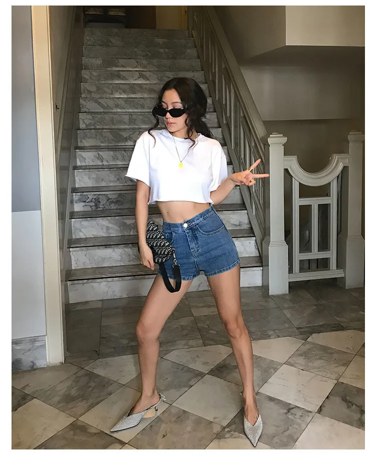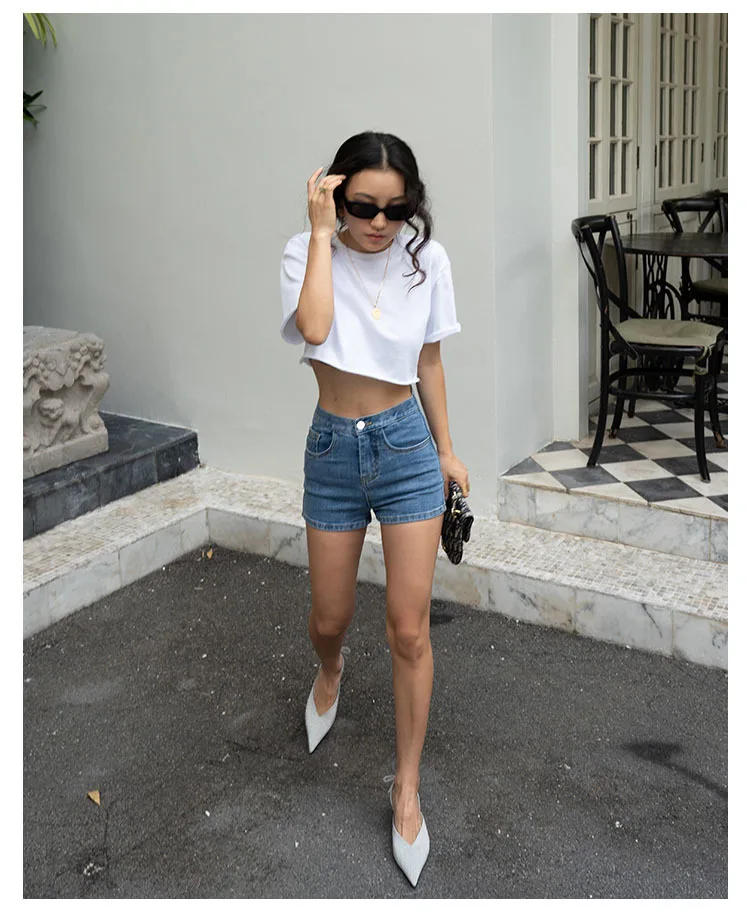 Женские узкие джинсовые шорты с высокой талией однобортные завышенной и молнией