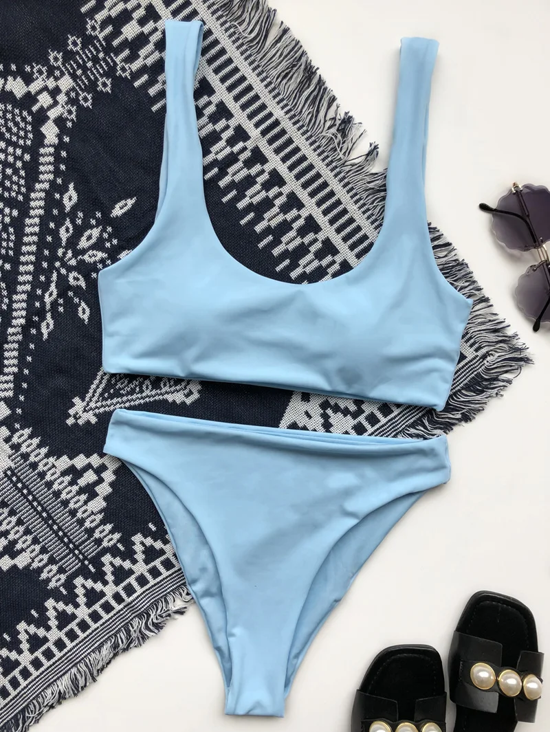 Тип купальника: комплект бикини Пол: для женщин Стиль: 2020 Новый Материал: полиэстер, нейлон Стиль бюстгальтера: мягкий Тип узора: однотонный Талия: высокая талия Посылка: бюстгальтер-1 шт. трусы-1 шт.
