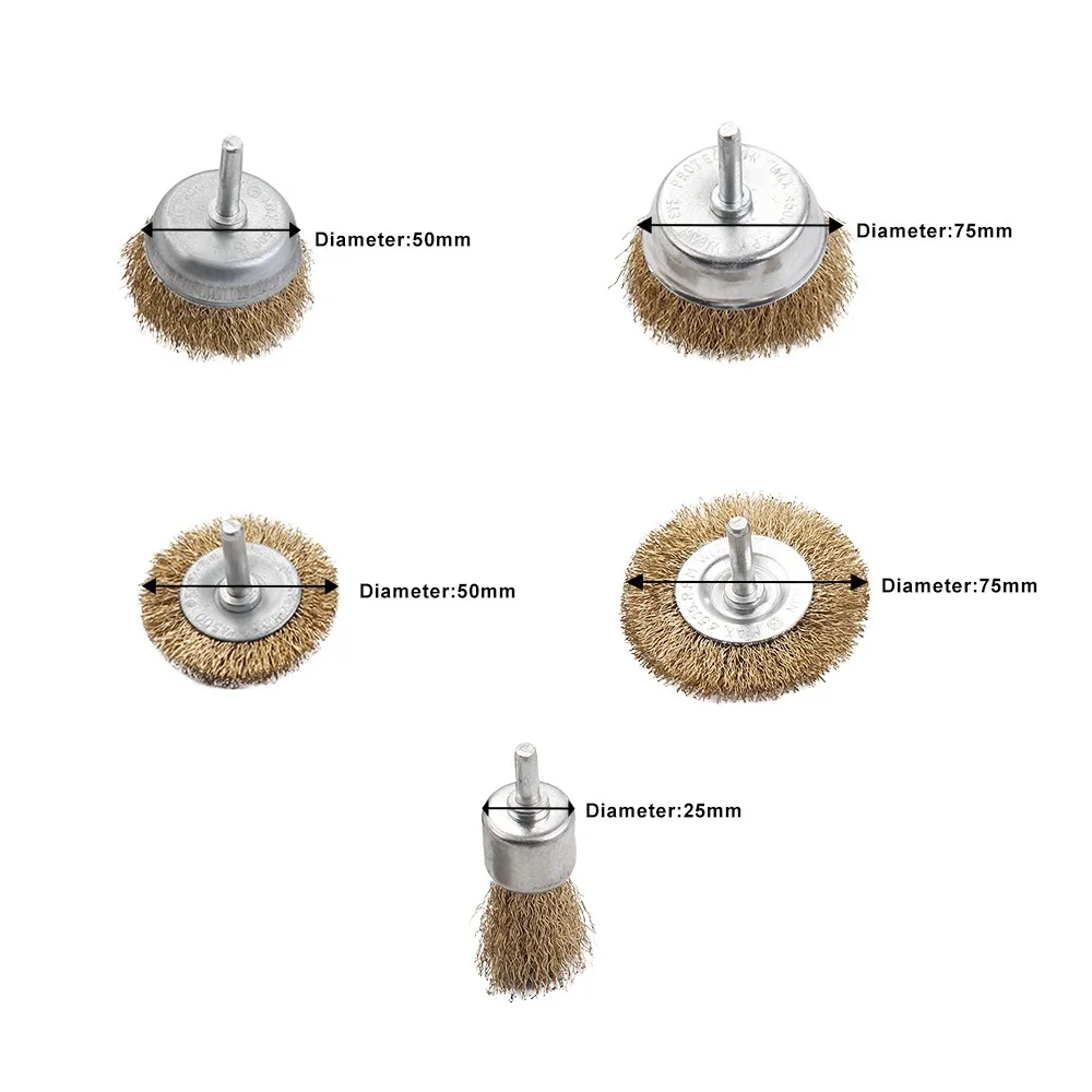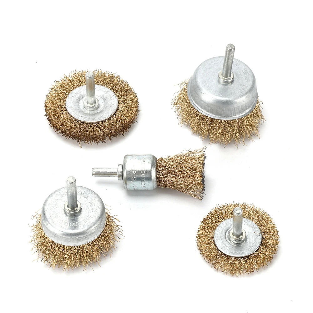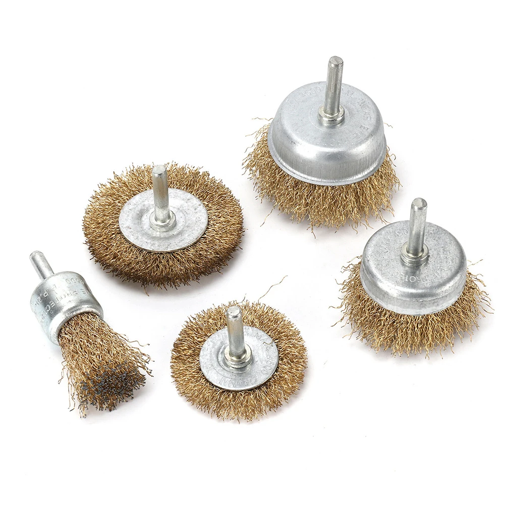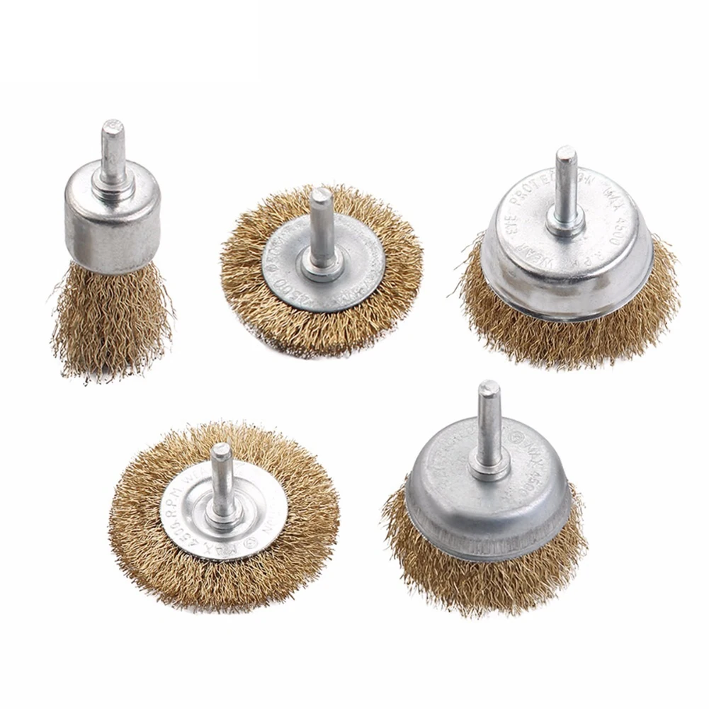 * 5 шт./компл. с латунным покрытием стальная проволока щетка колесо чашки сверла вложения