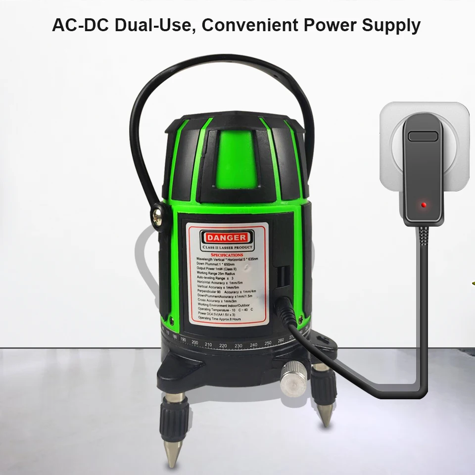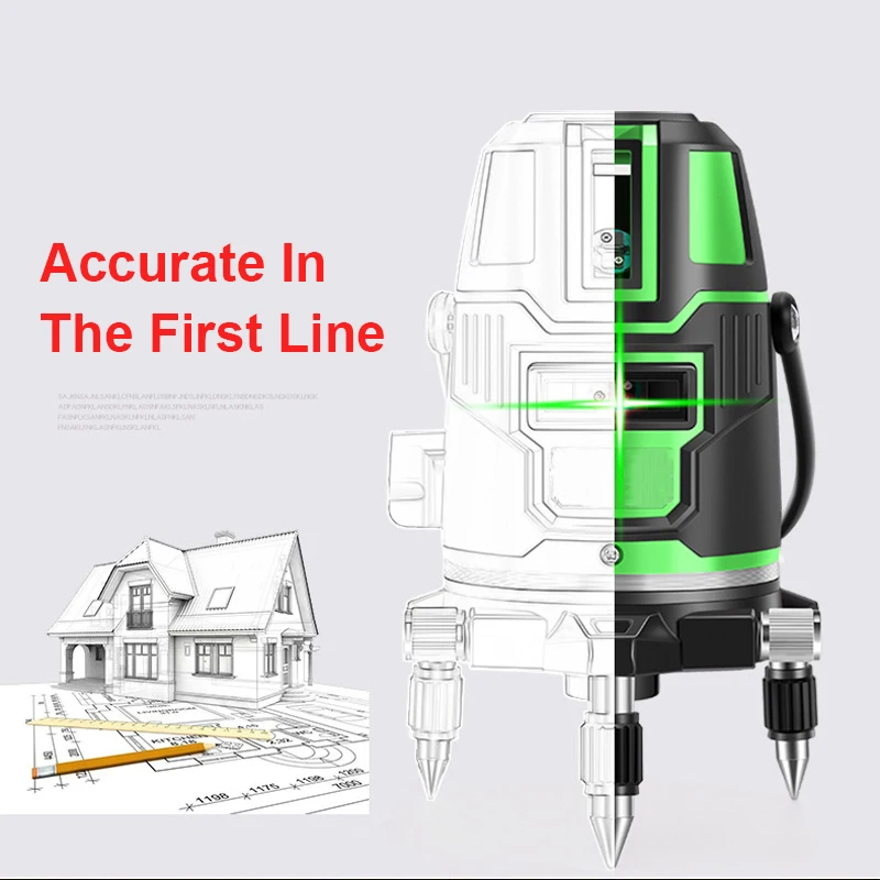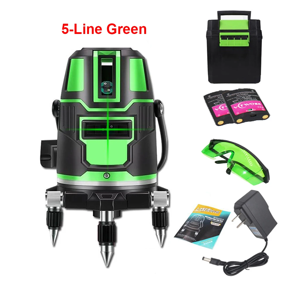 Лазерный уровень с 5 линиями: 5 линий, 6 точек (4 вертикальных, 1 горизонтальный, 1 точечный вниз, 5 улучшенных точек)