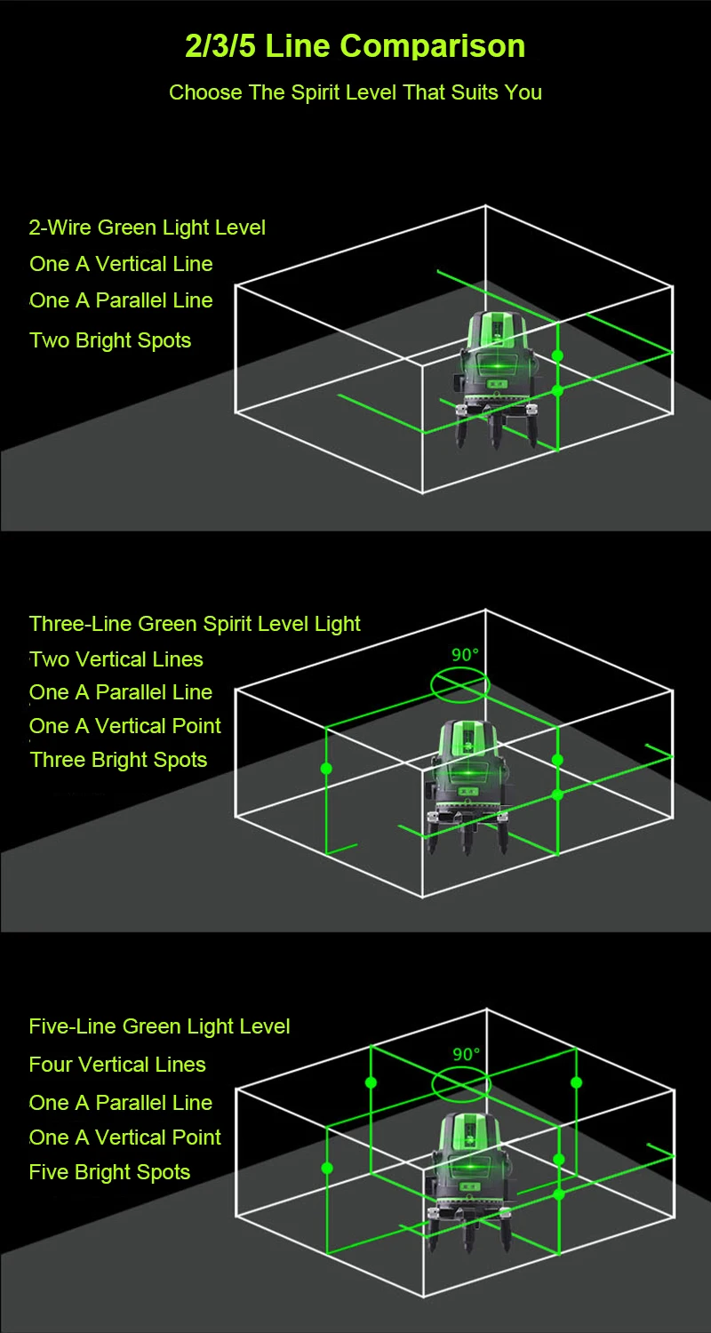Лазерный уровень с 3 линиями: 3 линиями, 4 точки (2 вертикальные, 1 Горизонтальная, 1 нижняя точка, 3 улучшенных точки)