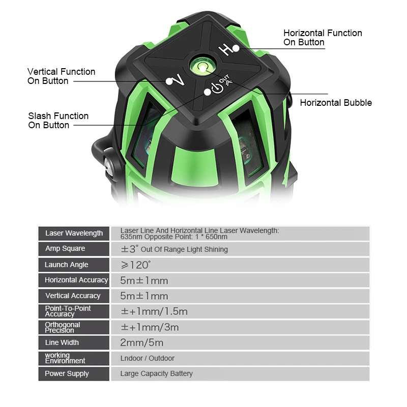Этот профессиональный самовыравнивающийся лазерный уровень имеет 2/3/5 линий для широкого спектра выравнивания и точного измерения.