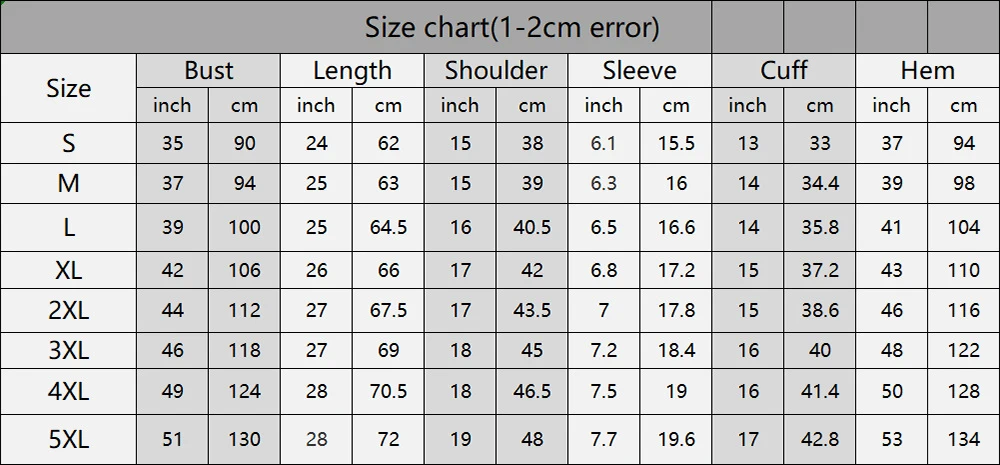 1. Измерьте фактическую длину рубашки, бюст, плечо и рукав, сравните с нашей таблицей размеров.